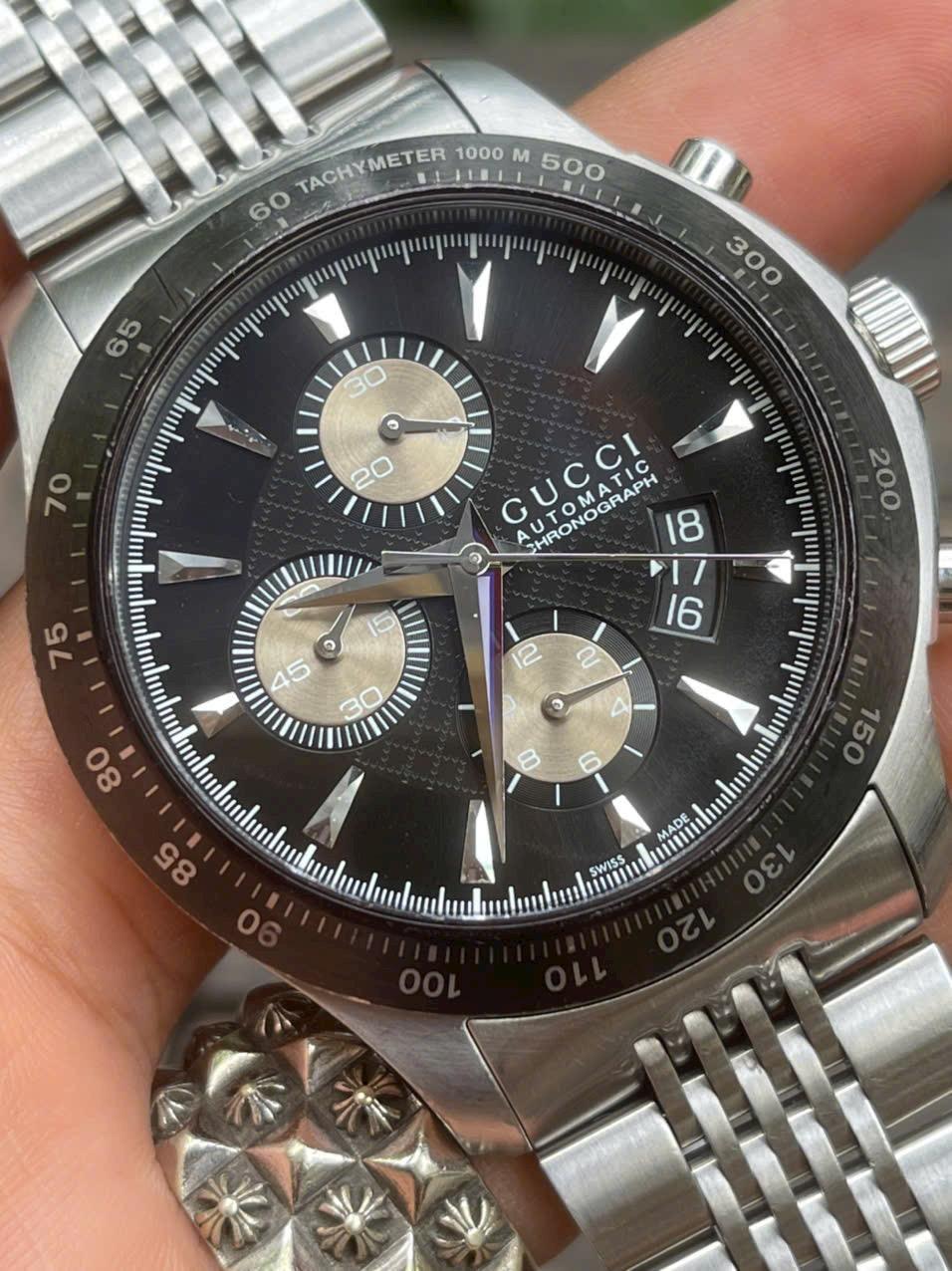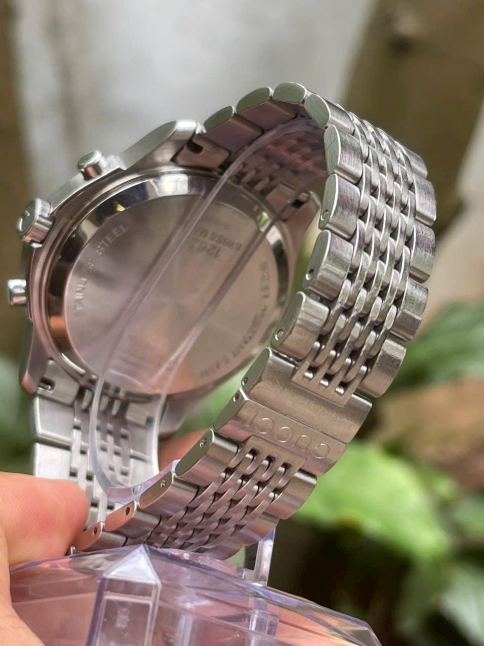 G U C C I Swiss Made Chính hãng Sz 45 chưa númMáy Auto chronoKính SaphireDây khoá zin Chốg nước 50mMới 95% ( mới ~45tr )💲- 1X.000 ka ( full hộp )