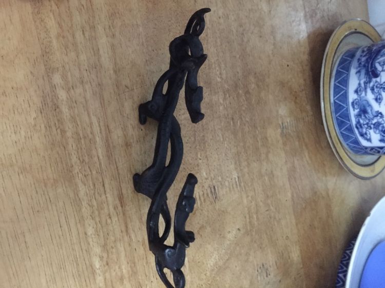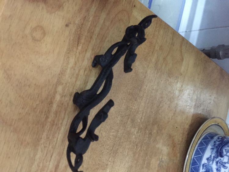 Gác bút đồng xưa hình song long đúc bằng đồng, tinh tế sắc xảo. Thích hợp dùng để gác bút trưng bày sưu tầm. Giá fix 850k, ai có nhu cầu vui lòng alo cho em.