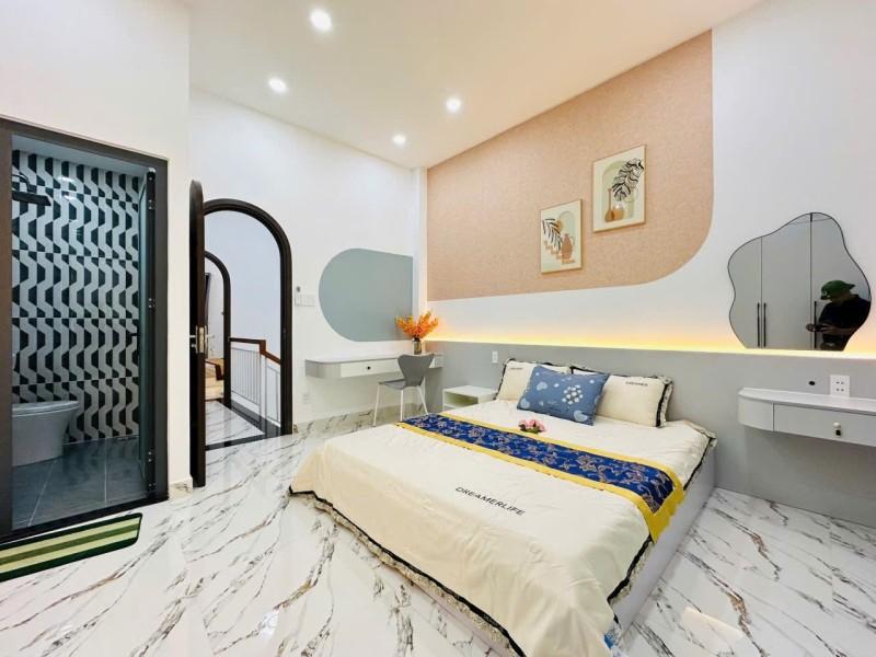 - Vị trí : Nguyễn Văn Khối - P.11 - Gò Vấp , HCM. - Hướng : Tây Nam. - Kết cấu : 1 trệt 1 lầu đúc BTCT; gồm sân rộng rãi để xe, phòng khách, phòng bếp, 2PN, 3 toilet riêng biệt từng phòng, có ban công cửa sổ giếng trời rất thoáng. - Đường : 4 m khu dân cư an ninh yên tĩnh. - Diện tích : Ngang 4.1 dài 13. Có thêm gần 10m làm sân và giếng trời. - Pháp lý : Sổ hồng riêng hoàn công đầy đủ. - Nội thất bàn giao : Full option.
