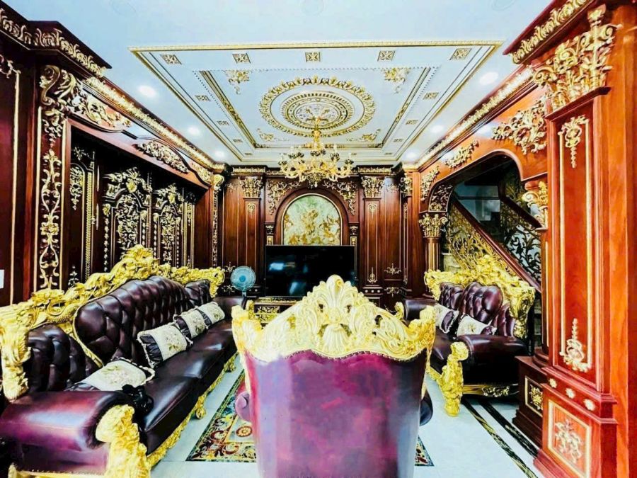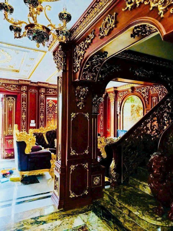 - Biệt Thự thiết kế theo phong cách bán cổ điển, toàn bộ được dát vàng 24k và gỗ Gõ Đỏ nguyên khối, nhập khẩu, bảo hành trên 50 năm.<?xml:namespace prefix = "o" ns = "urn:schemas-microsoft-com:office:office" />