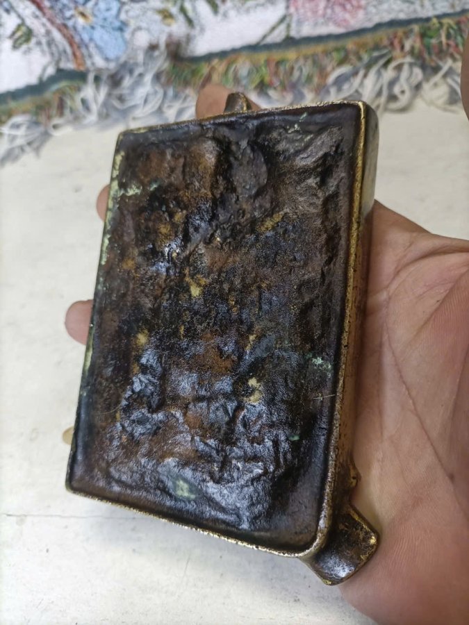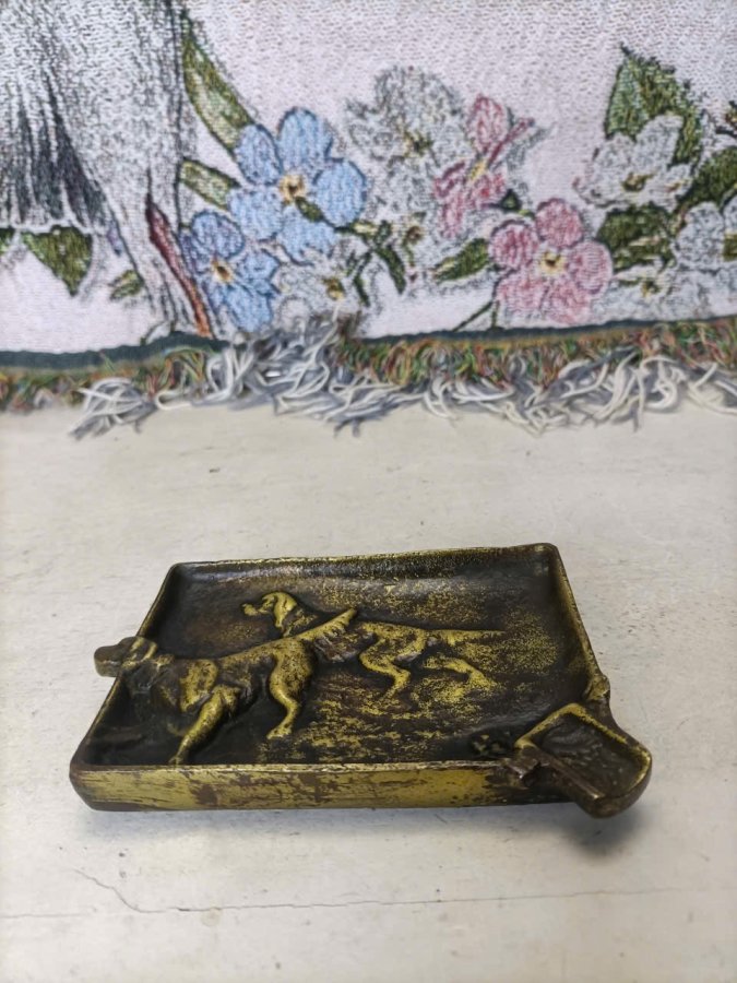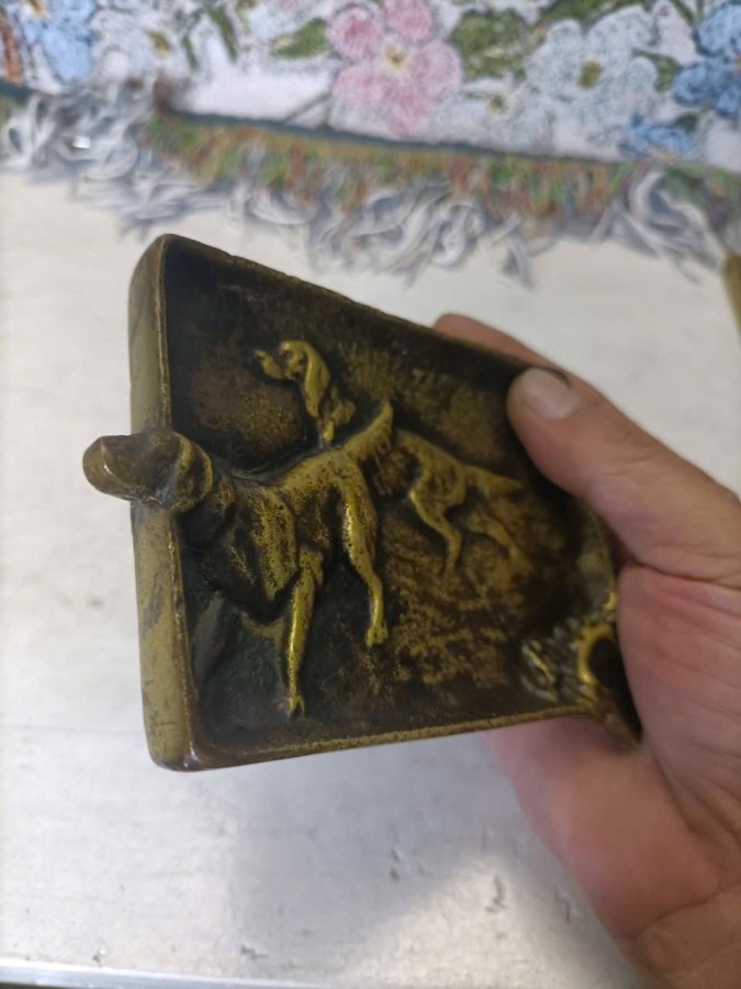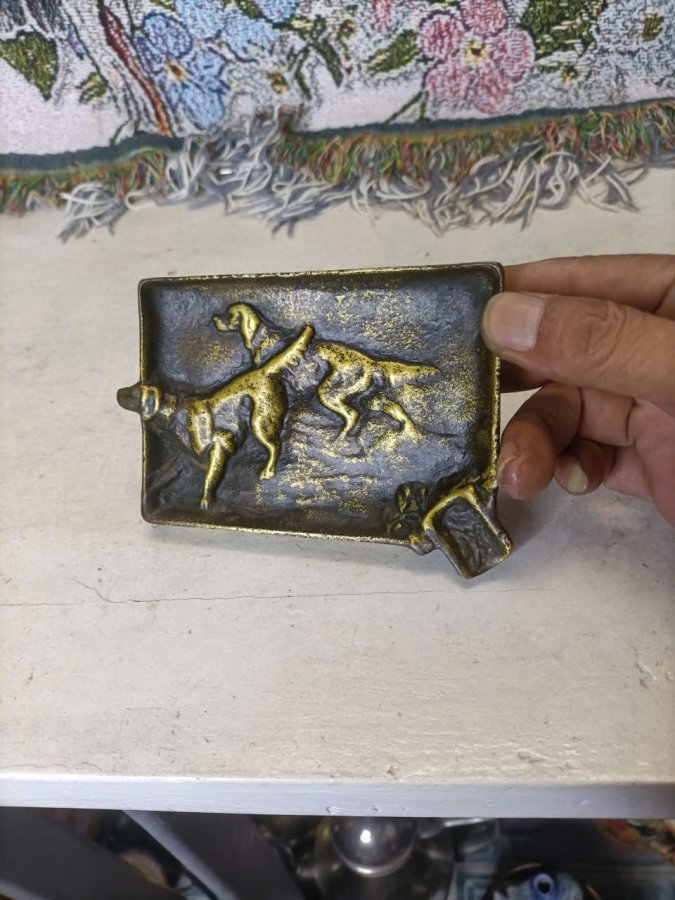 Gạt tàn đồng đúc England , nghệ nhân chế tác độc đáo phù điêu , dầy nặng tay 12x8x1.5