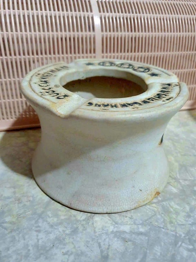 Gạt tàn gốm Biên Hòa của Ngân Hàng Tín Nghĩa xưa.Cao 9cm*14cm.Lành đẹp. 1400k