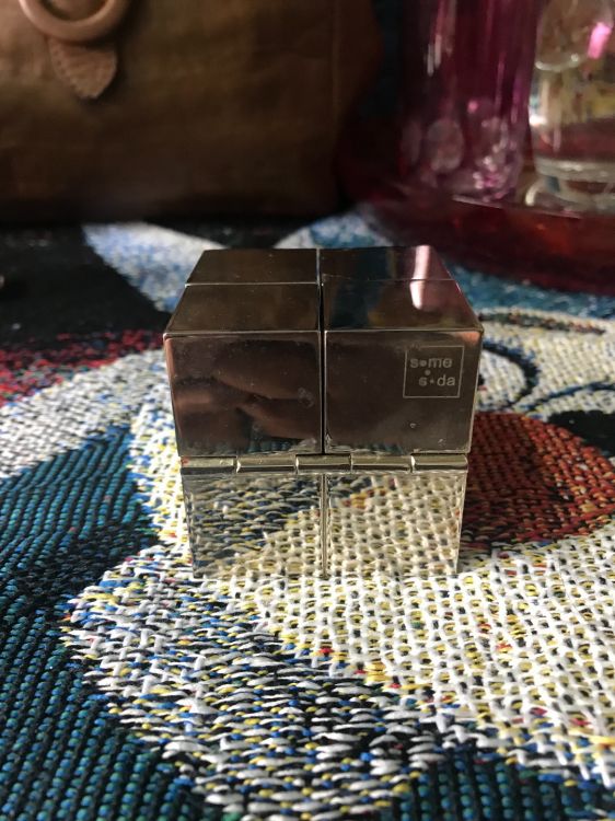 Em hàng cực độc gạt tàn hàng hiệu SOME SODA băng inox cực hiếm và độc hình rubic . Mở ra sẽ là gạt tàn . Mới đẹp long lanh. Nặng trịch . Hàng quá hiếm để sưu taqpj