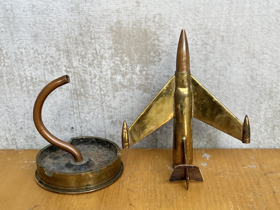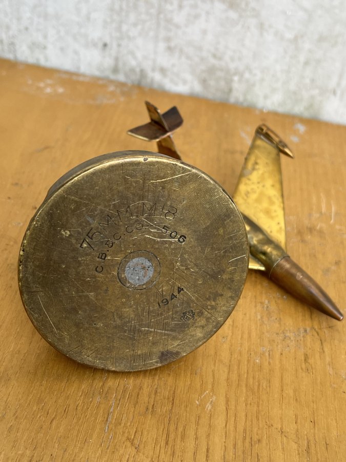 Gạt tàn ******* được chế tác từ vỏ Pháo 75mm của Mỹ Sx 1944 giai đoạn Thế chiến 2. Chiếc máy bay chiến đấu được làm đấu vỏ 12,7mm Mỹ luôn.
