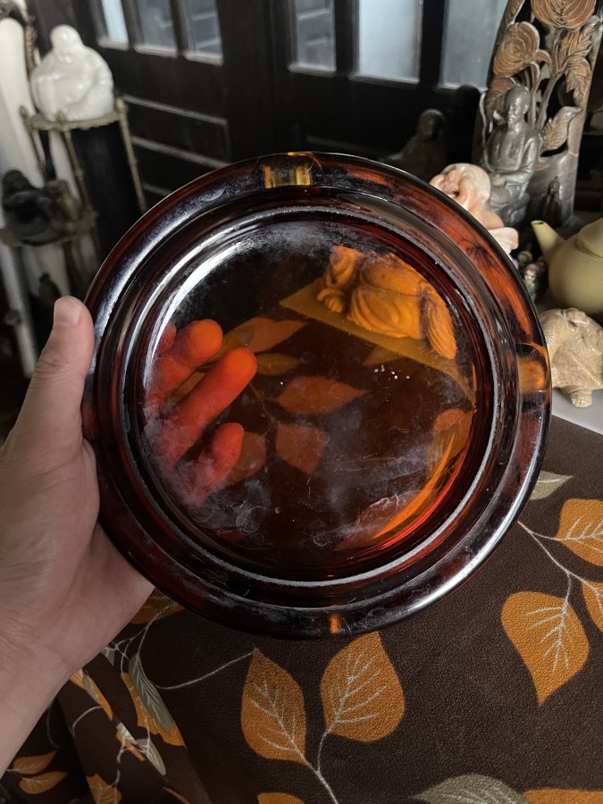 Gạt tàn thuỷ tinh đúc,màu hổ phách xưa