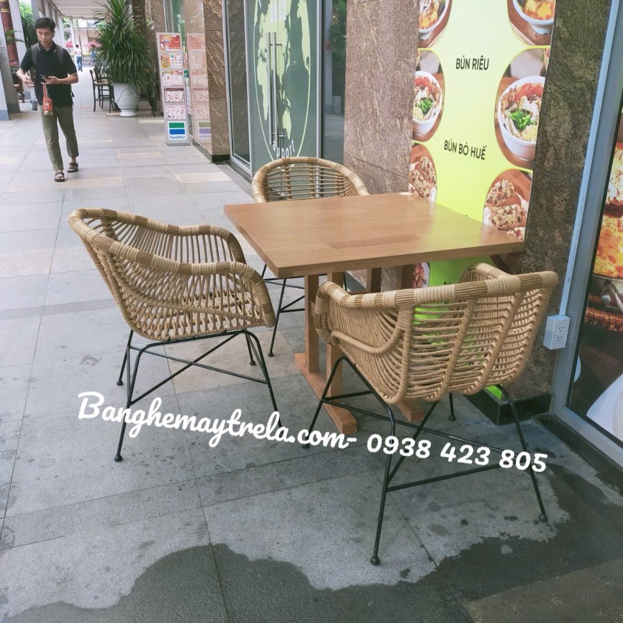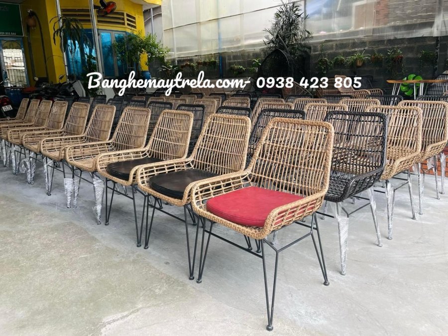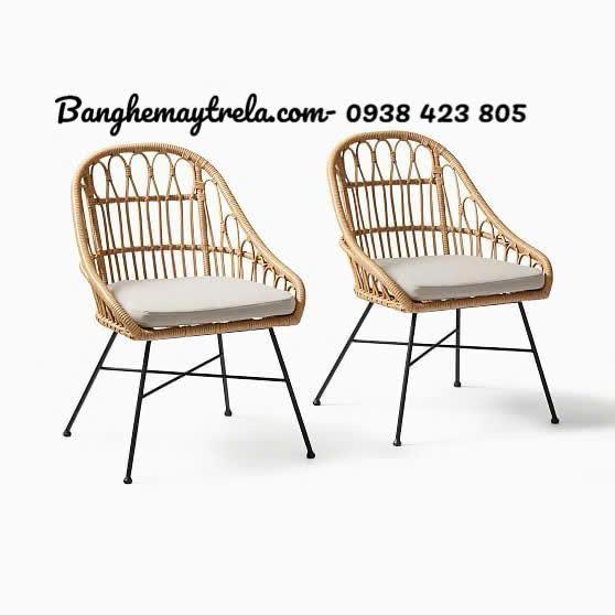 Ghế Ăn Khung Sắt Đan Dây Nhựa Giả Mây Tròn – Bền Bỉ & Thanh Thoát