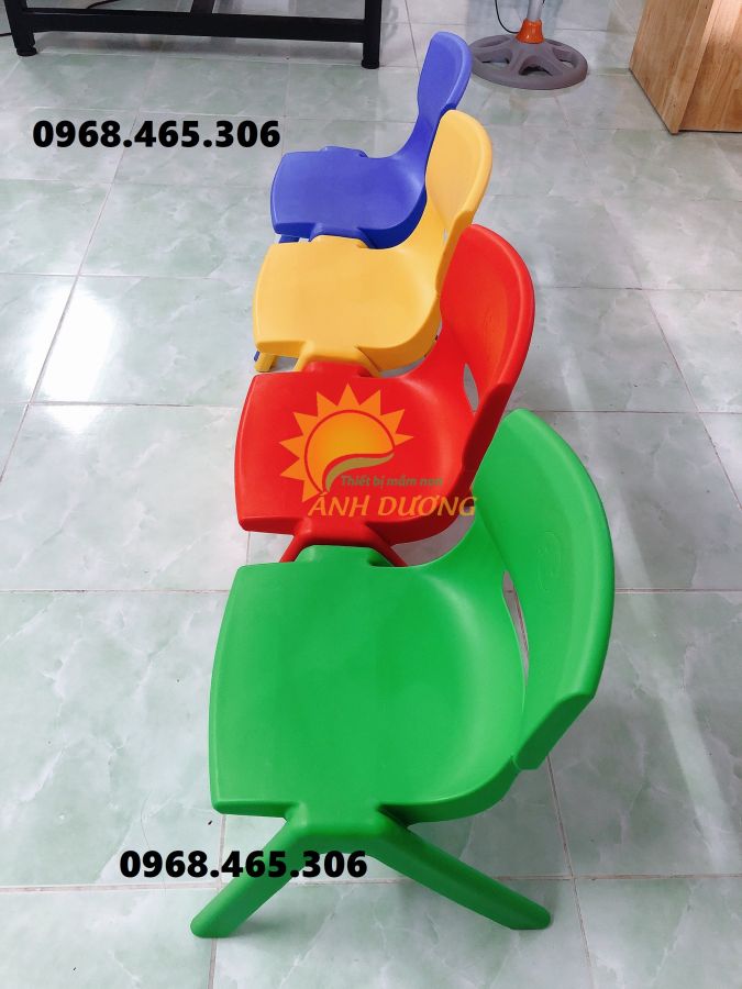 Ghế mầm non có thiết kế chống gù với lưng ghế uốn cong theo trục xương của bé. Mặt ghế lõm để trẻ khỏi bị ngã về phía trước.