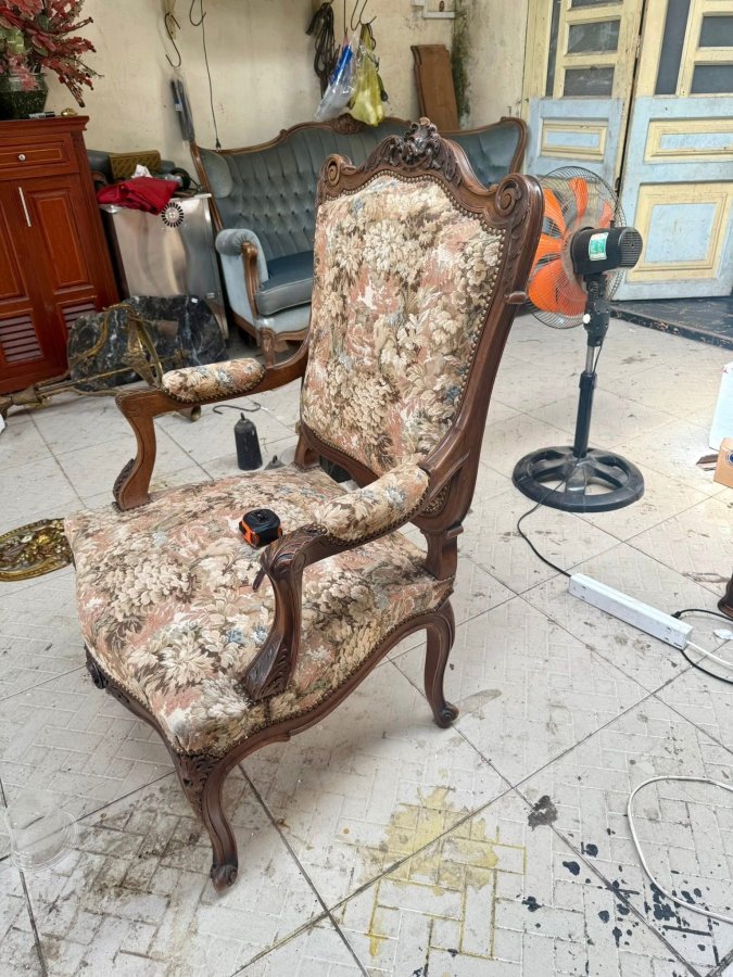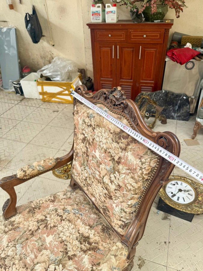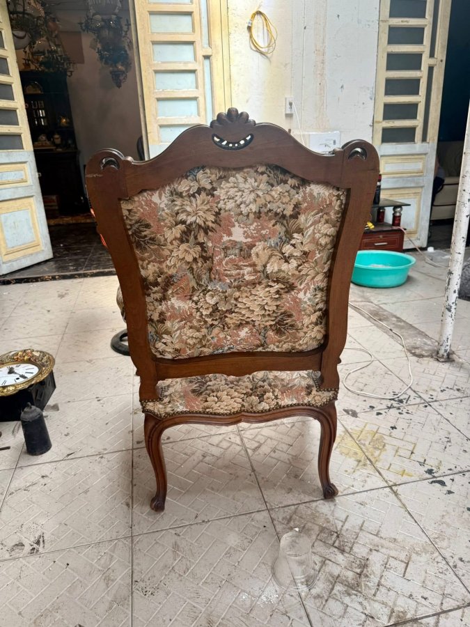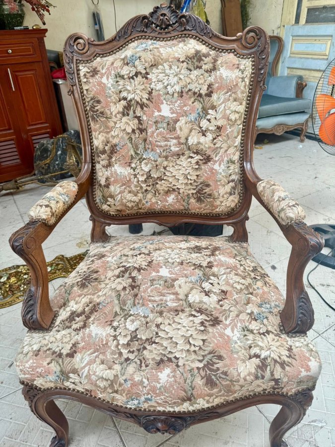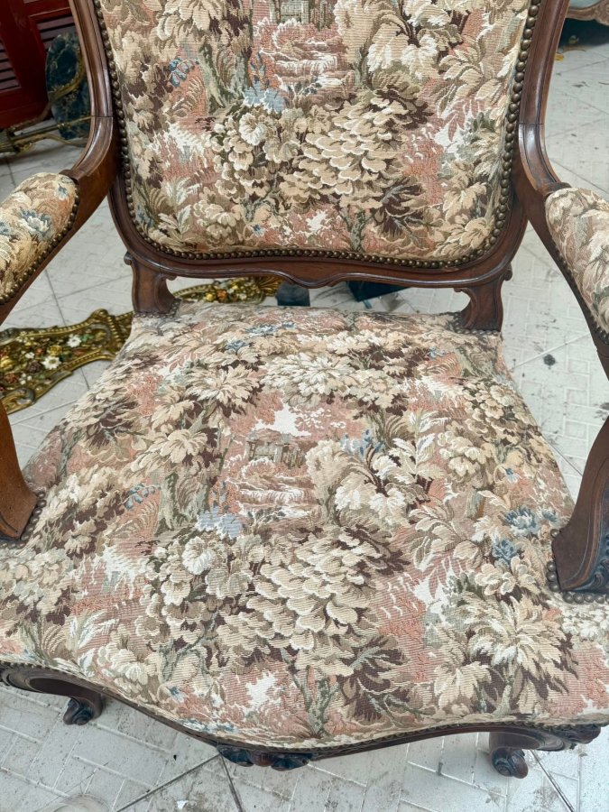 Một chiếc ghế bàn size to hàng cổ của Pháp được làm từ gỗ sò già phối với nỉ Trung Đông thêu tay hoàn toàn thủ công hoa văn sắc nét phù hợp để ngòi thư giãn đọc sách giá mềm. Call:0333534345