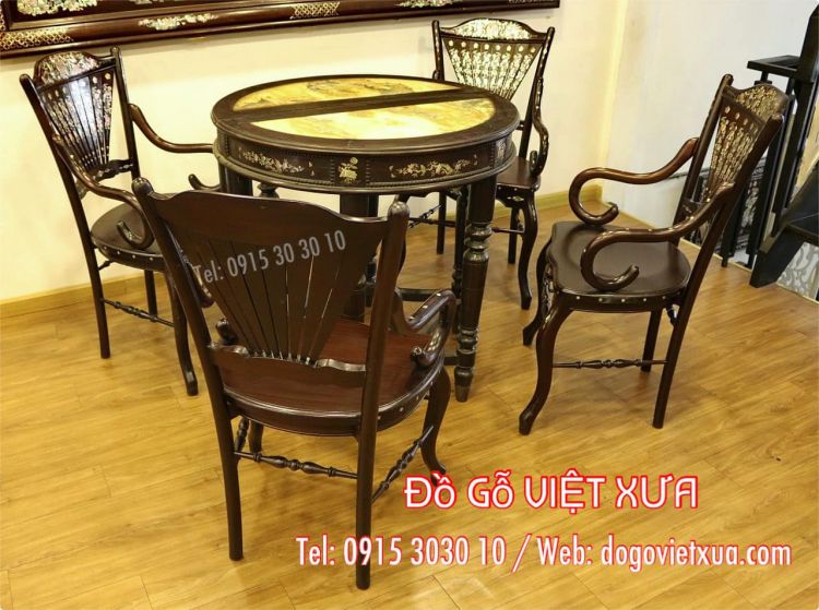 ghế gồm 5 món “Ghế rẻ quạt, Bàn tròn chân song tiện” theo văn hóa Nam