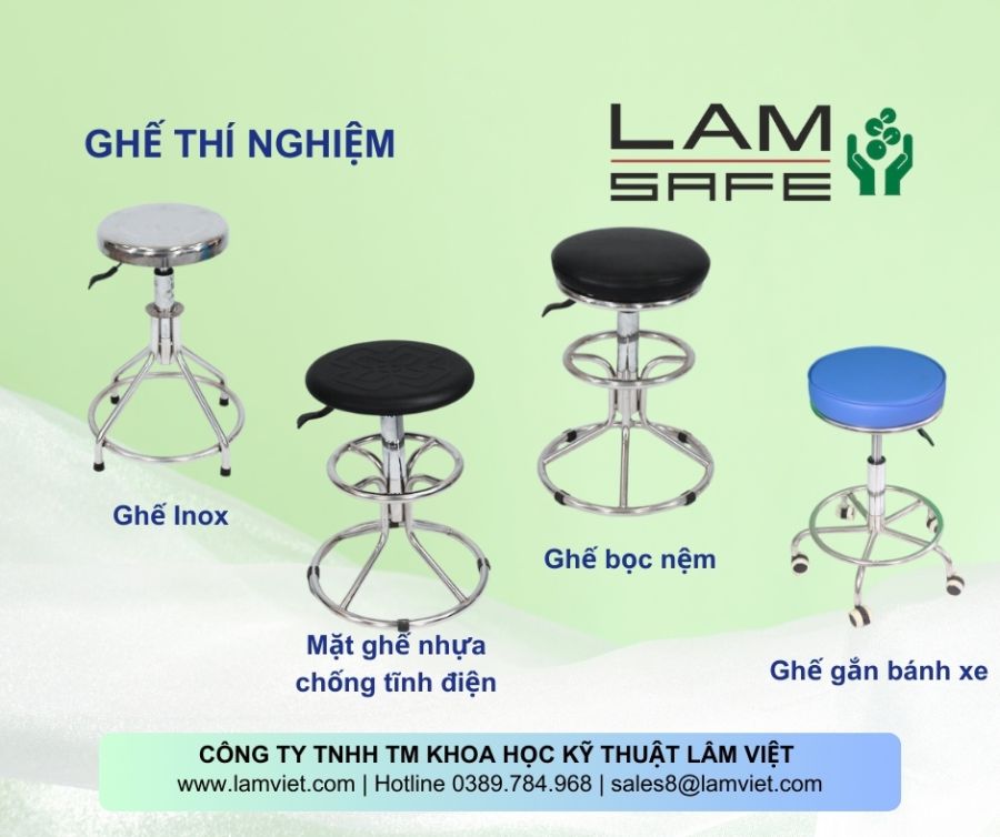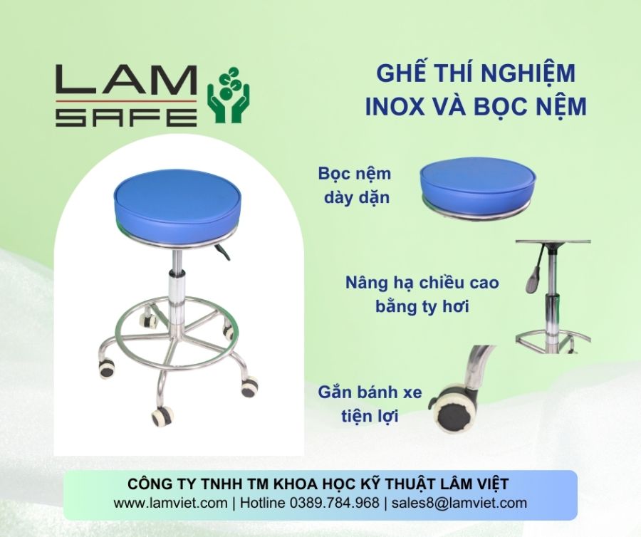 - Được thiết kế đặc biệt cho các phòng thí nghiệm, ghế inox 304 của Lam Viet tự hào mang đến sự bền bỉ, đẹp và chắc chắn để đáp ứng nhu cầu sử dụng liên tục và khắt khe với các dung môi và hóa chất thông thường.