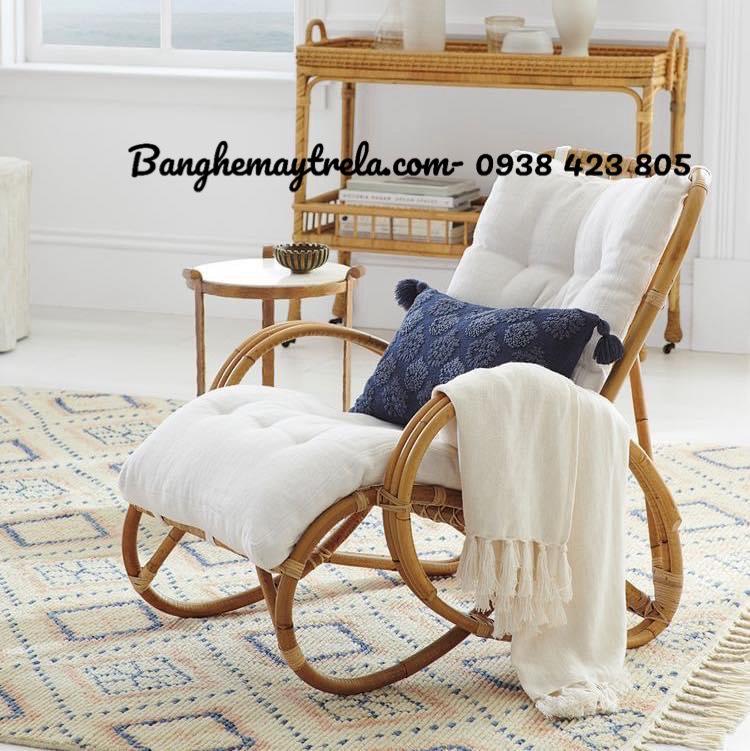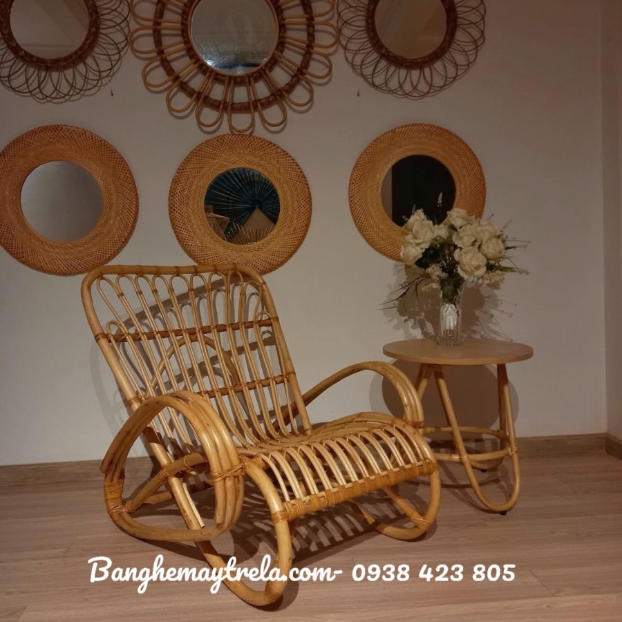 Ghế được làm từ mây tre tự nhiên, xử lý chống mối mọt, an toàn và thân thiện với môi trường. Thiết kế uốn cong theo dáng cơ thể, giúp người ngồi thư giãn tối đa. Màu vàng mây tự nhiên hoặc phủ sơn bóng nhẹ, giữ được vẻ đẹp mộc mạc. Dùng trong phòng khách, ban công, sân vườn, quán cà phê, homestay, resort,...