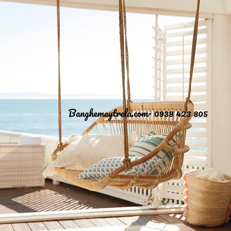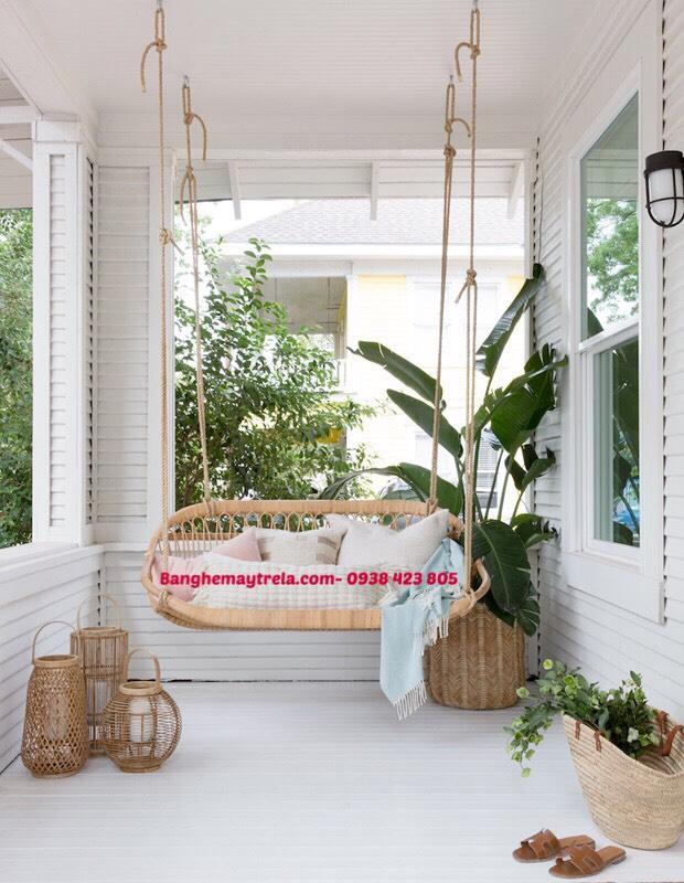 Ghế xích đu mây có thể treo trần trong phòng khách, ban công, hiên nhà hoặc khu nghỉ dưỡng, tạo điểm nhấn độc đáo và ấm cúng cho không gian. Màu sắc tự nhiên của mây kết hợp với đệm ngồi êm ái, giúp người dùng tận hưởng cảm giác êm dịu và thư thái sau giờ làm việc.
