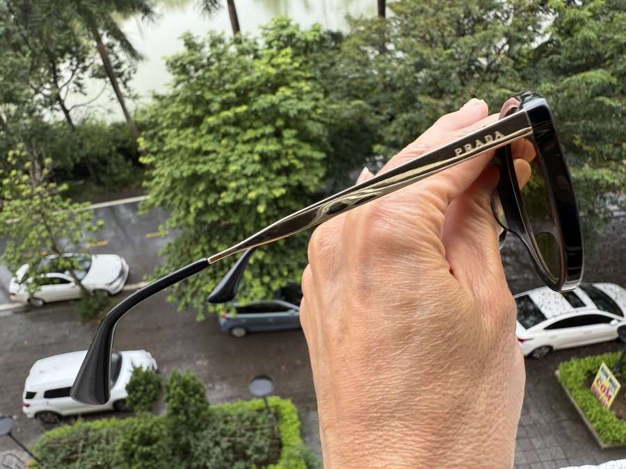Giá 1.550k ko bớt.Prada Catwalk PR 17SSF 1AB0A7 55 - Black.Chính hãng.Cực mới.Cực sang và lịch lãm.Mắt kính váng dau trong chuẩn.thân càng mạ đẹp.Size 140.Dài càng 140.