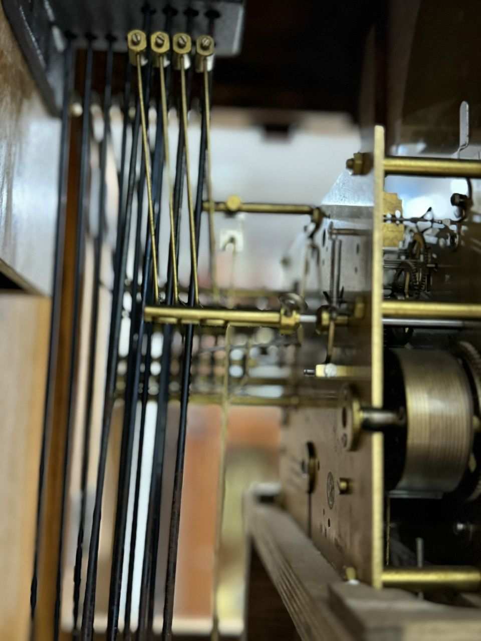 🔸️Cơ chế hoạt động: Ridgeway hoạt động bằng cách kéo dây cót tự động của 3 quả tạ nặng, quả lắc chạm khắc 12 con sư tử dao động nhịp nhàng và điểm chuông vang. Chiếc đồng hồ này có 12 gông chơi 3 bản nhạc Whittington, Westminster và St Michael - Có chế độ im lặng