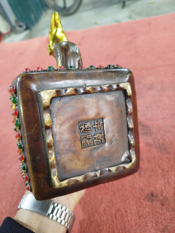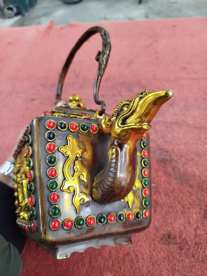 Giao lưu ấm đồng khảm ngọc chim chích hoa sen đt 0983491274