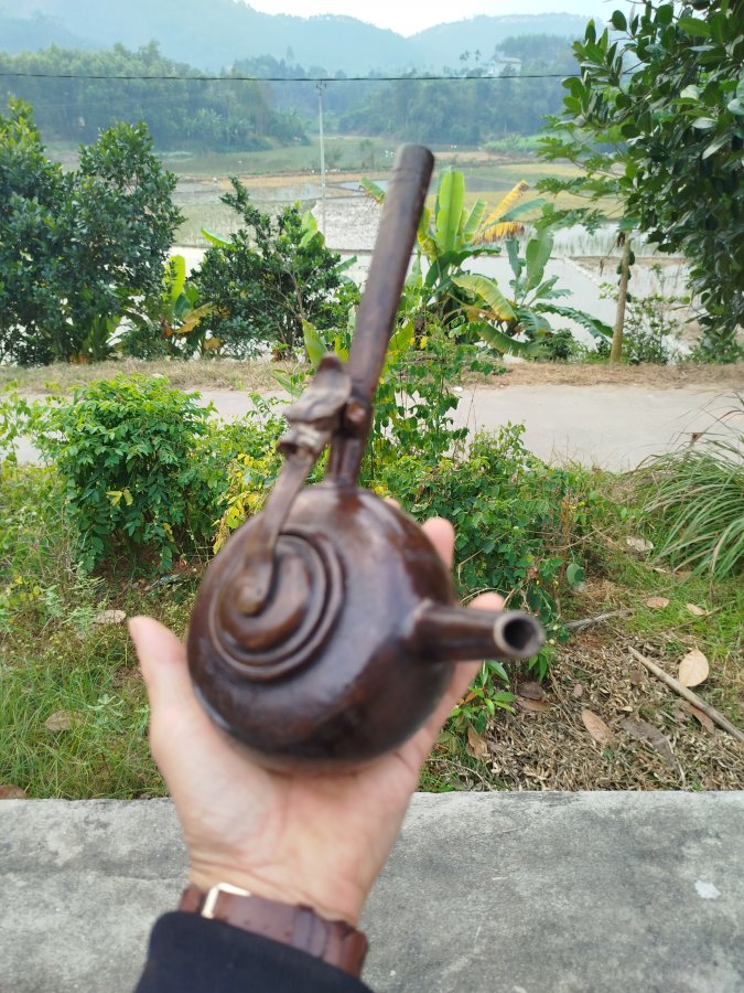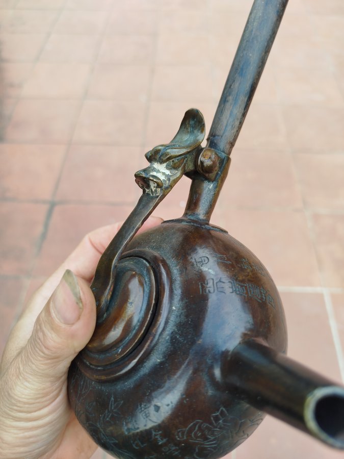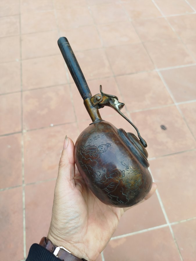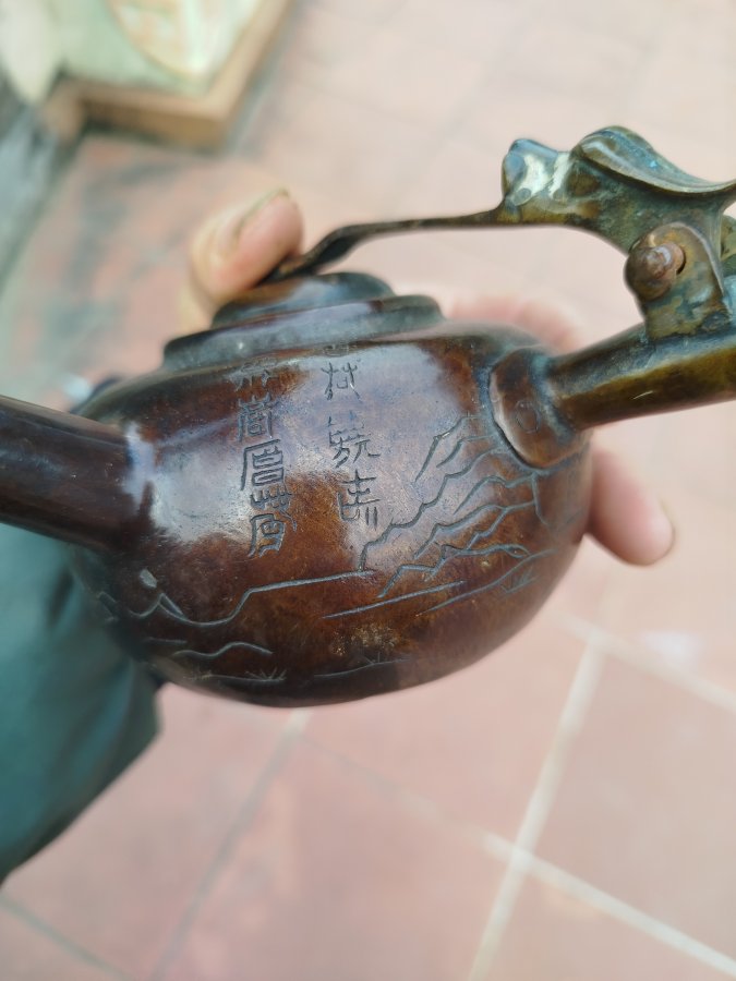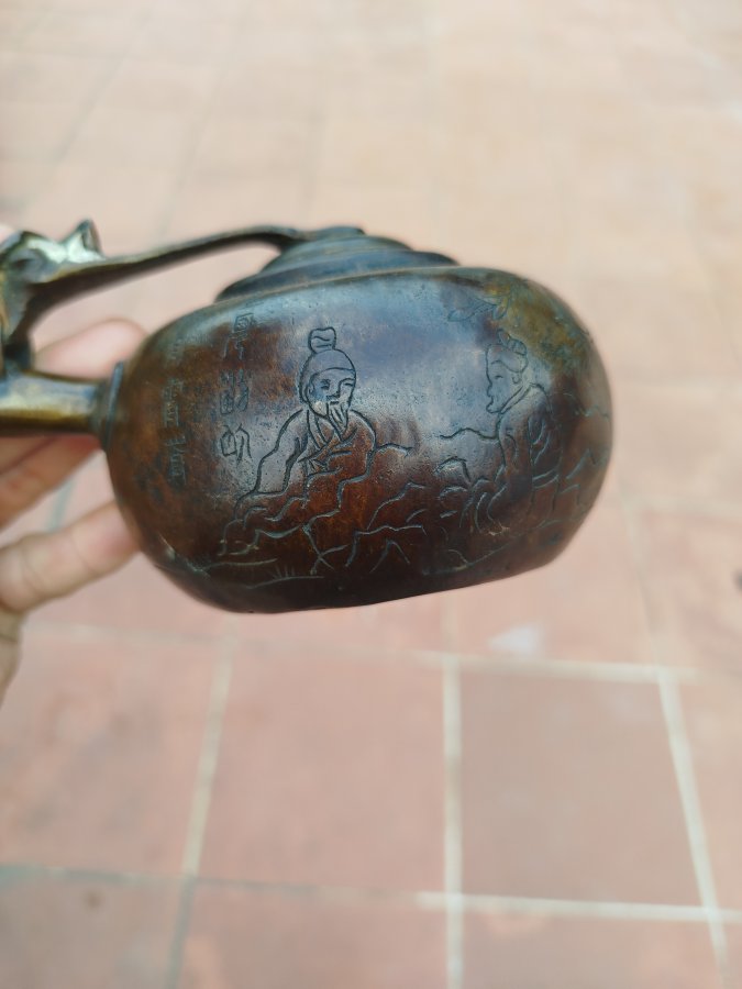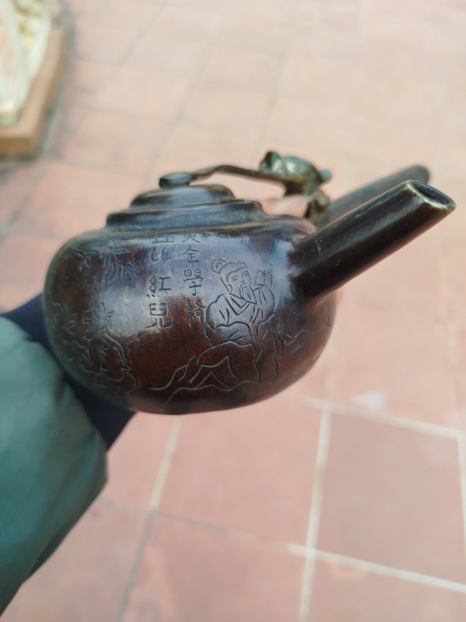 Giao lưu ấm đồng tay ngang cổ hoa văn đẹp đt 0983491274