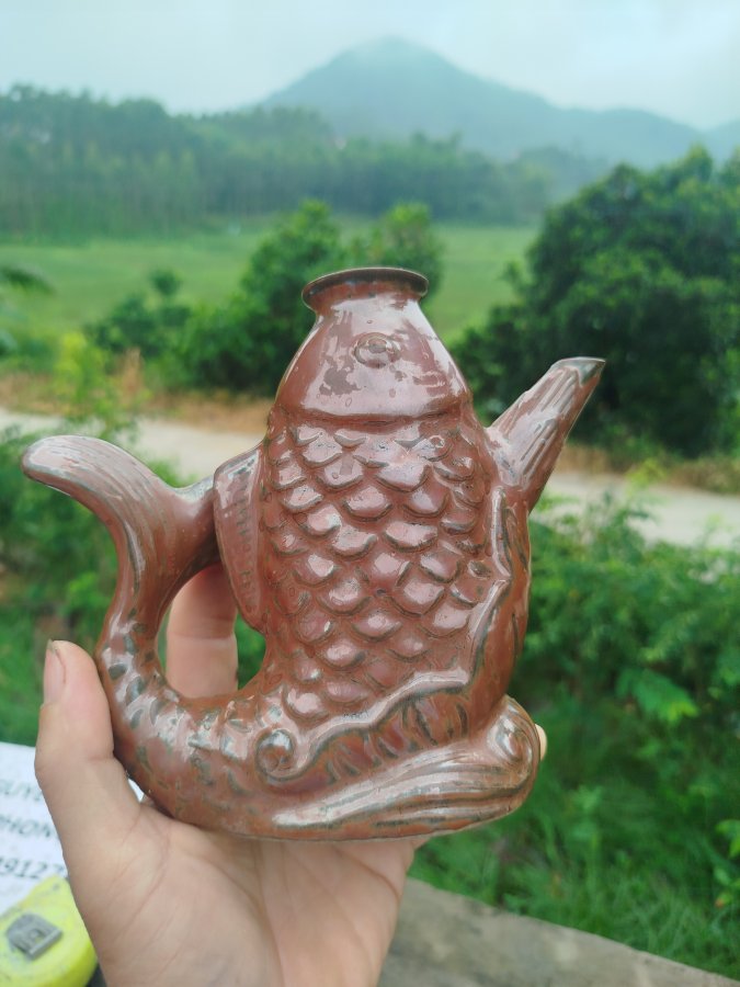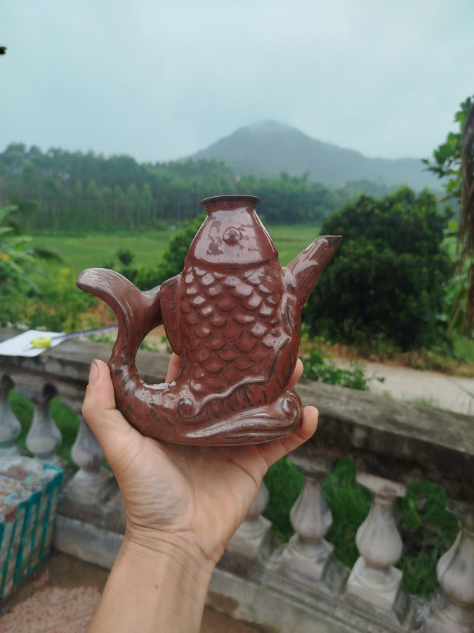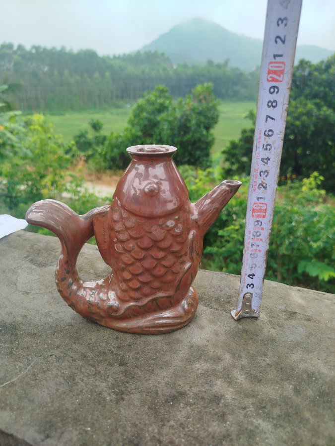 Giao lưu ấm gốm men nâu hình cá chép lành đẹp đt 0983491274