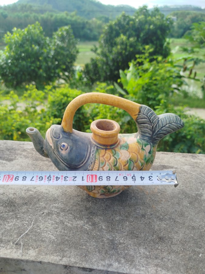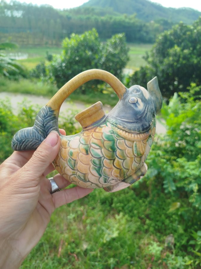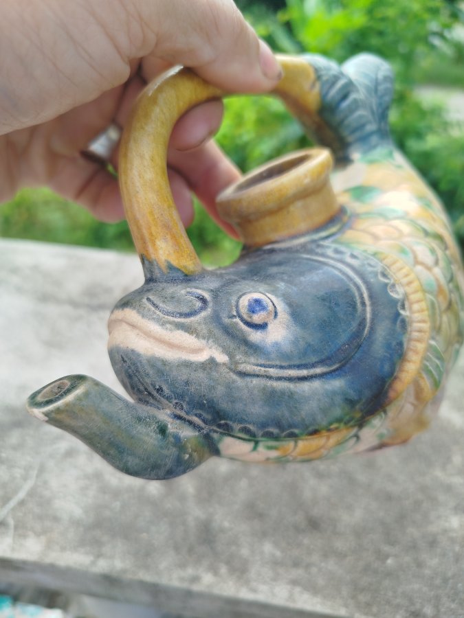 Giao lưu ấm gốm men tam thái hình cá đt 0983491274