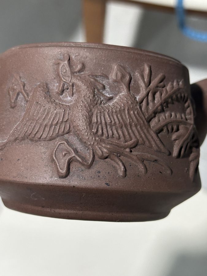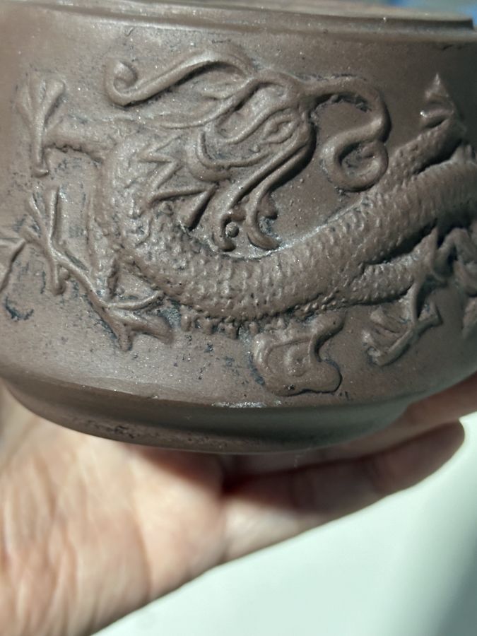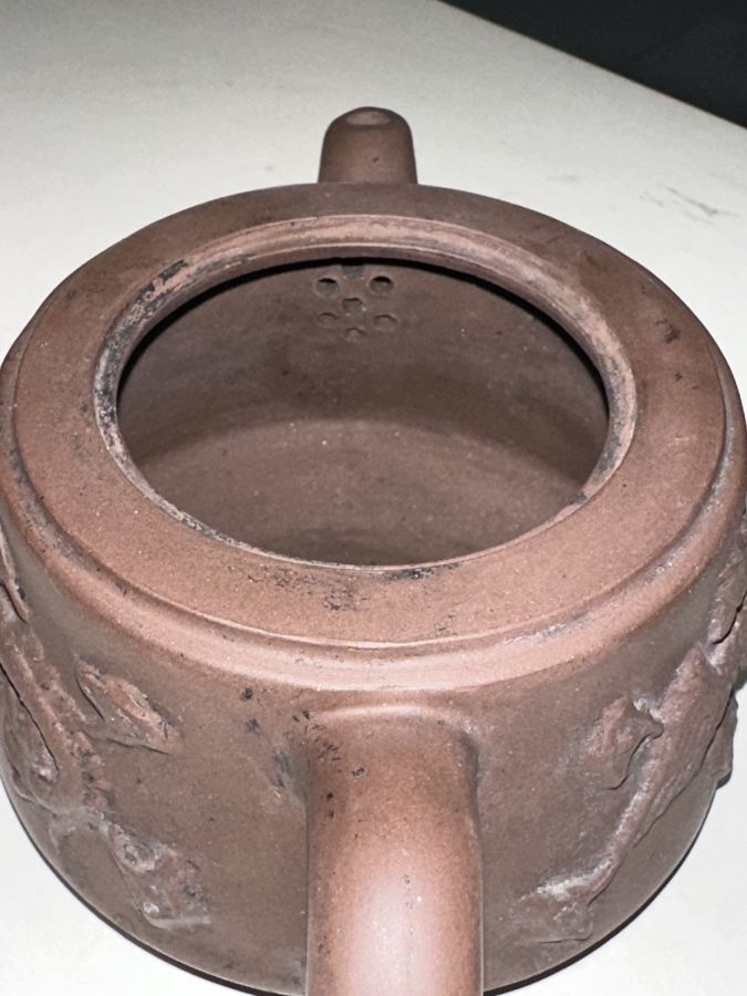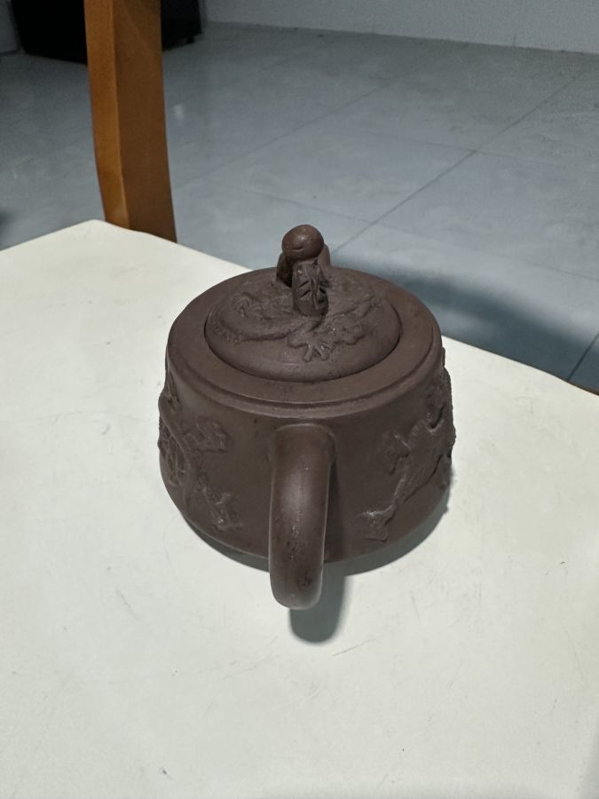 Dân chơi ấm trà đất có câu..Thứ nhất Thế Đức gan gà. Thứ hai lưu bội. Thứ ba Âm mạnh thần.. đã phân biệt đất tử sa Thế Đức đứng vào hàng thứ nhất.. ấm đắp nổi rồng phụng tạm dịch( long phụng hòa minh) hàng khai quật..bao hàng chuẩn cổ vật tuyệt đẹp Từ vòi tới quay 17cm lành . Bán 550 ngàn bao gởi