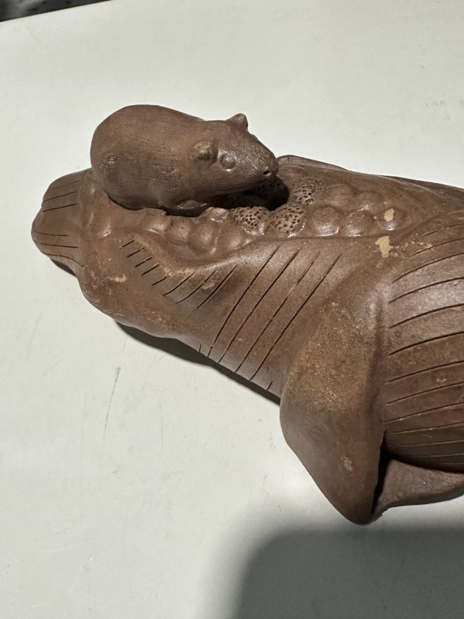 Ấm tử Sa. Dáng. Độc lạ. Hàng khai quật..bao hàng chuẩn cổ vật quý hiếm..Dài 17cm, ngang 8cm.. lành..950 ngàn đồng bao gởi..