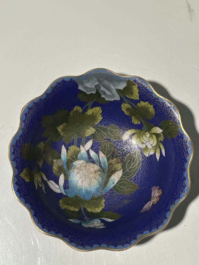 Giao lưu bát cánh sen pháp lam.. Đồ Huế xưa .tuyệt đẹp và chuẩn cổ vật.Cao 5cm, ngang 15cm, rất dày và nặng. Lành nguyên bán rẻ thu hồi vốn 750 ngàn đồng bao gởi