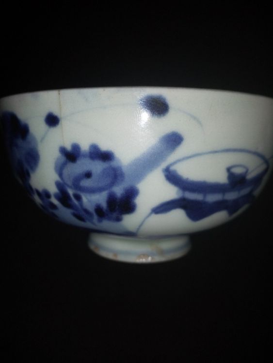 Giao lưu bát sứ chân cao, chuẩn cổ, thấu quang. Tình trạng âm mờ, đk 10.5cm