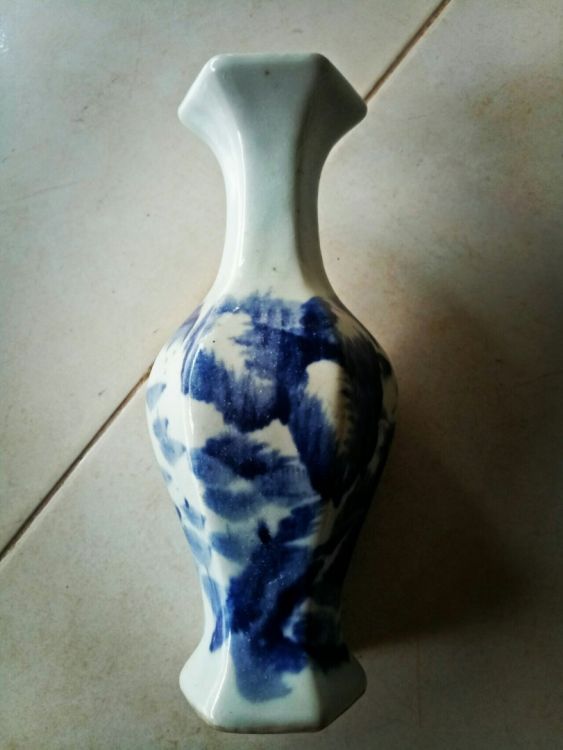 Giao lưu bình lục lăng mãn họa men lam Huế.