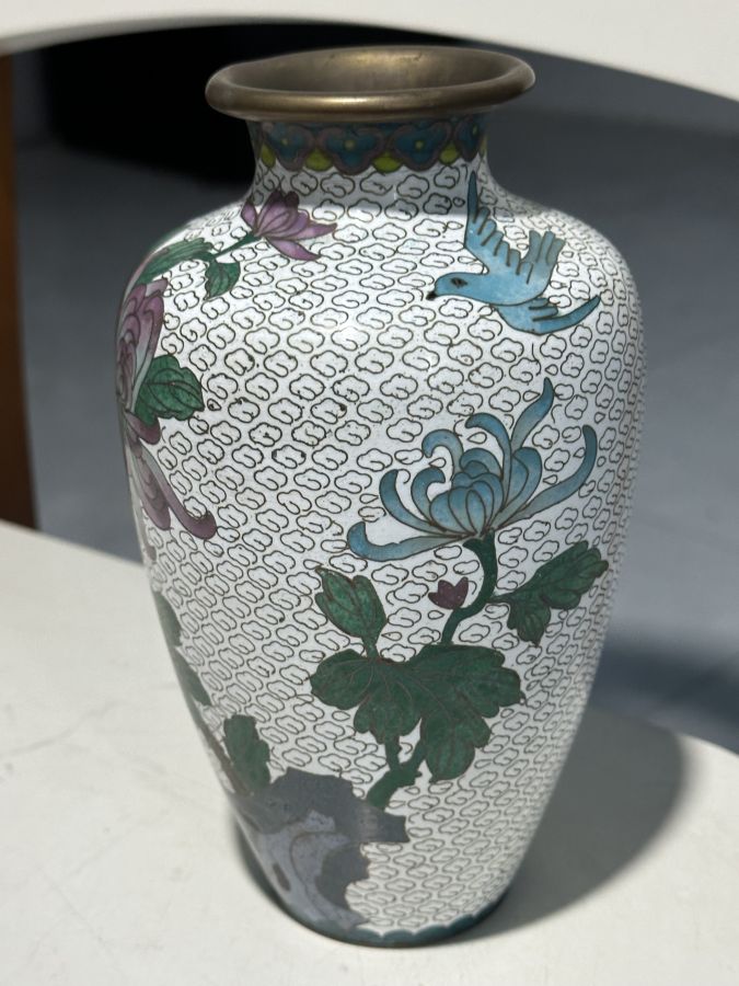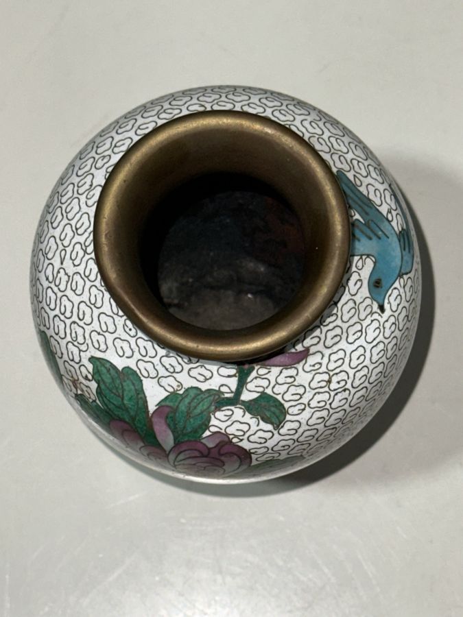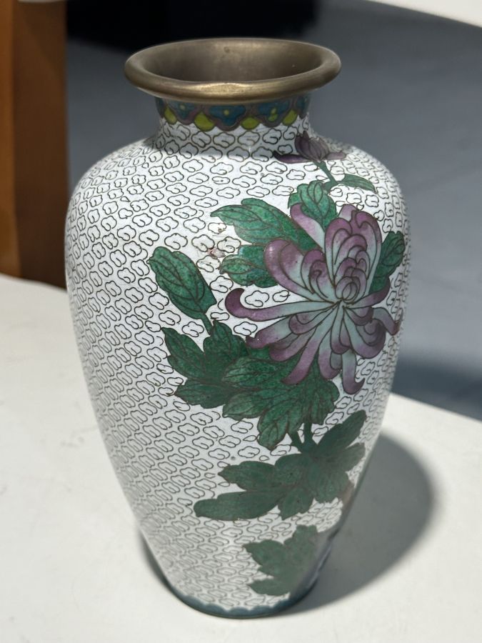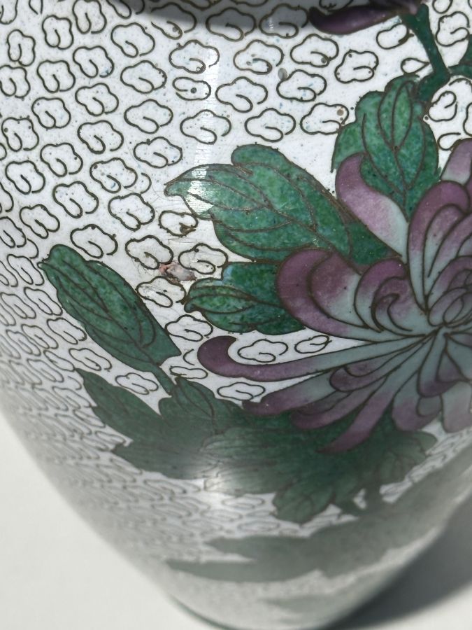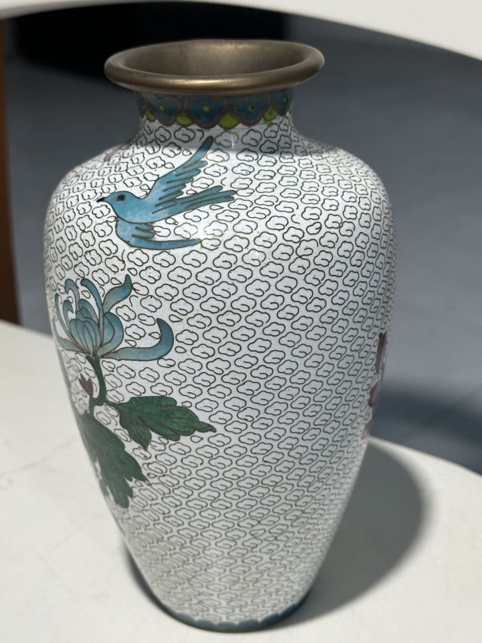Bình pháp lam đồ Huế xưa chuẩn có.Cao 18,5cm, cấn nhẹ như hình chụp . 450 ngàn đồng bao gỡi