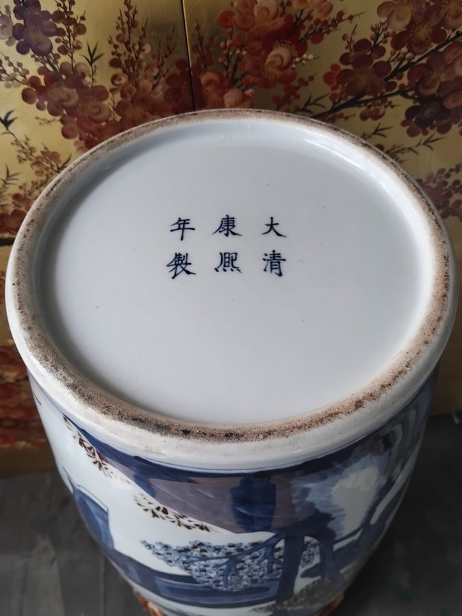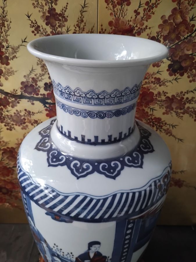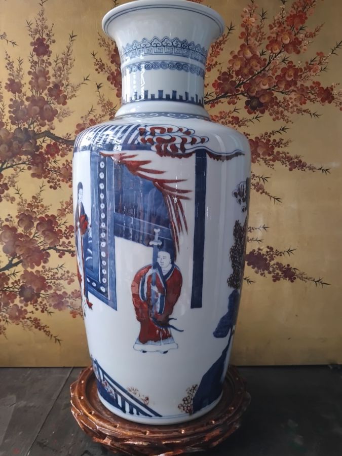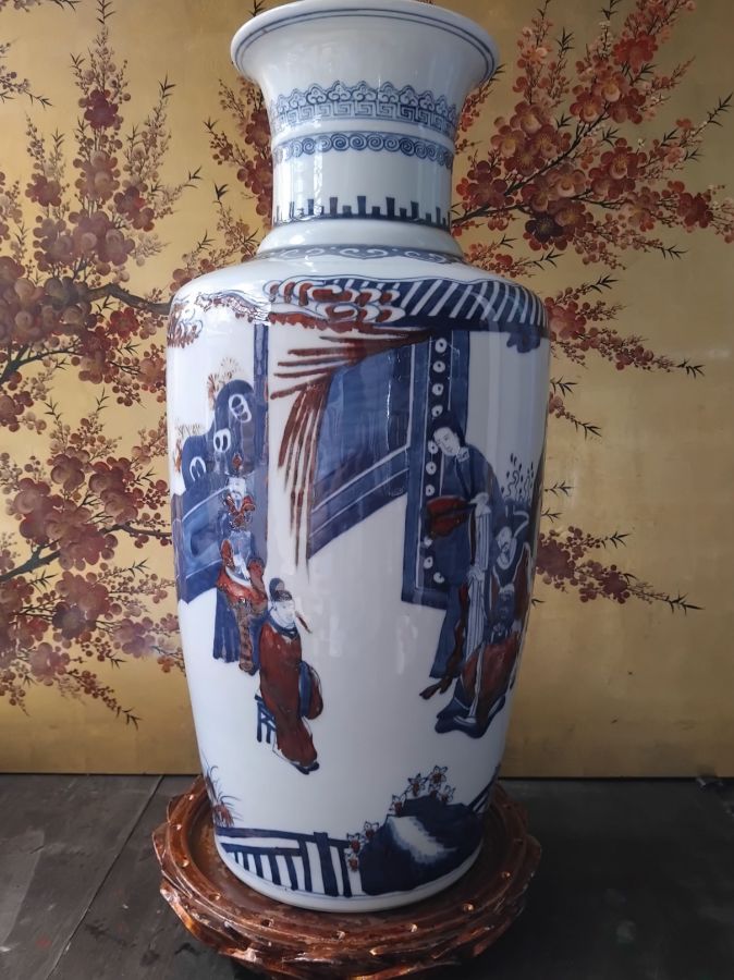 Giao lưu bình vẽ chàm tam lam kết hợp màu đỏ huyết
