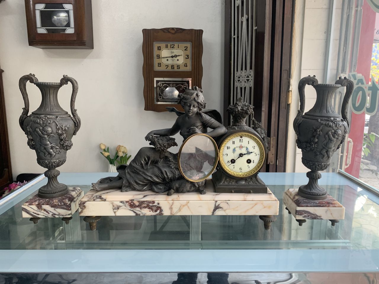Đho Pháp ngang 52cm - cao 40- bộ 3 món SET - mặt men chuông chén ---- còn rất đẹp để Deco bày phòng khách ! ( tượng cô gái và chân nến cu tí ) :: đã lau dầu chỉ vc bày ! ::: GL 10tr500. M.z 0947007572