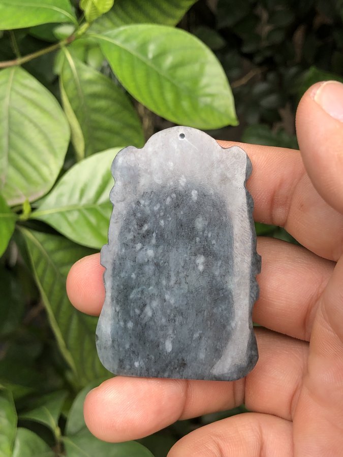 Giao lưu bức Thần Tài Cẩm Thạch A chất gà đen. Kt 61 x 39 x 7.5 mm