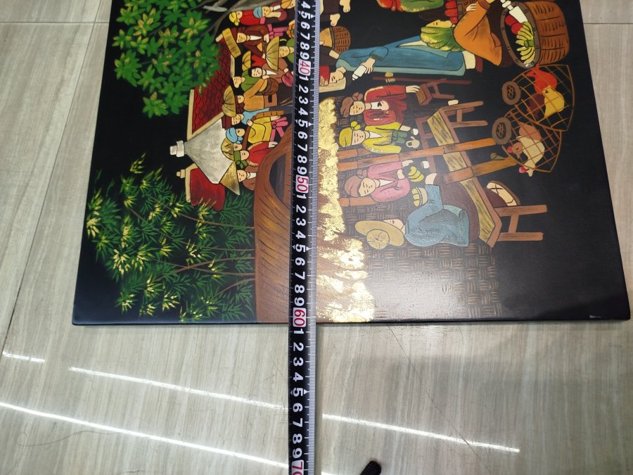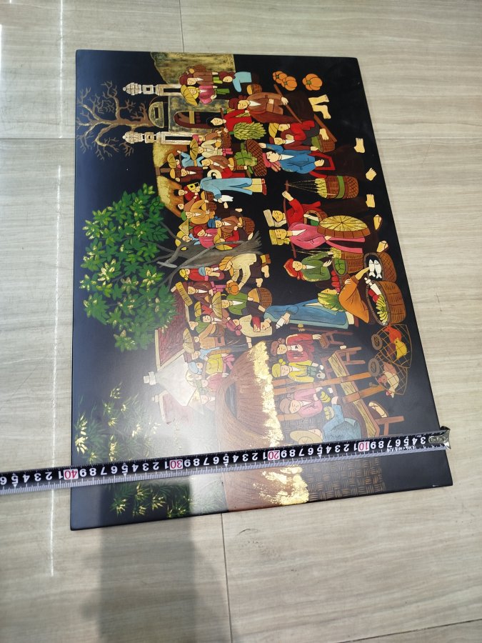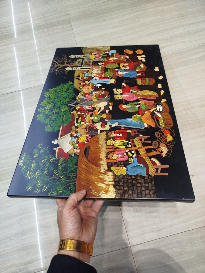 Giao lưu bức tranh gỗ sơn mài cảnh chợ quê đt 0983491274