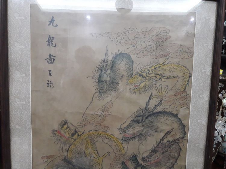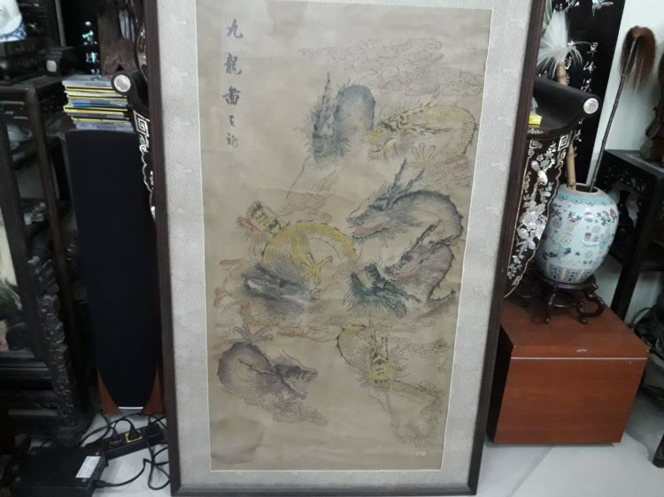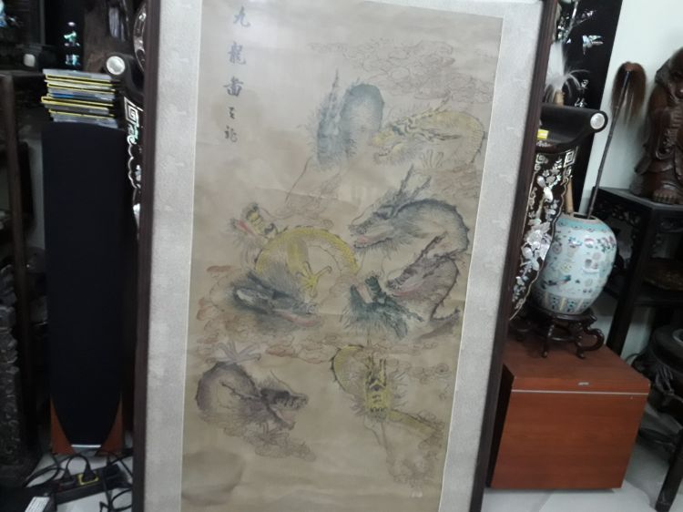 Giao lưu một bức tranh vẽ chín con rồng " Cửu Long" rất đẹp , chiều cao 112cm, chiều ngang 60cm ( số đo không tính khung), chất liệu giấy bìa của Tàu rất bền và đẹp. Chỉ giao lưu tranh , không có khung , kính phố .Các bác giao lưu xin gọi trực tiếp.