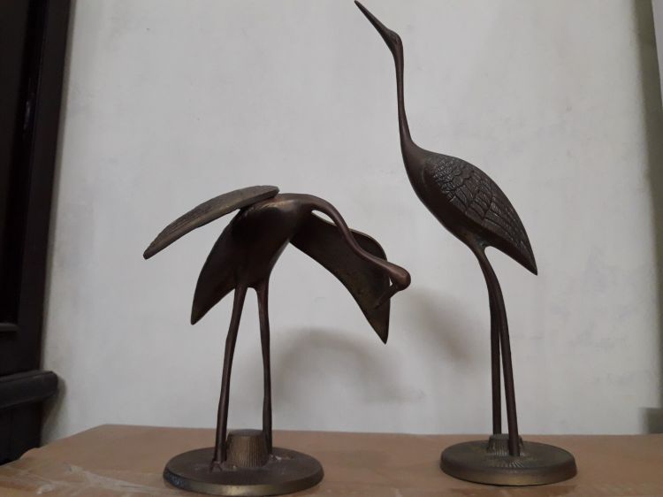 Giao lưu cặp hạc đồng xịn rất đẹp ,con cao : 31cm, con thấp cao 18cm, lành nguyên vẹn,trưng bày decor rất đẹp, đăng lên cho bác nào yêu.Kính phố.Các bác giao lưu xin gọi trực tiếp.
