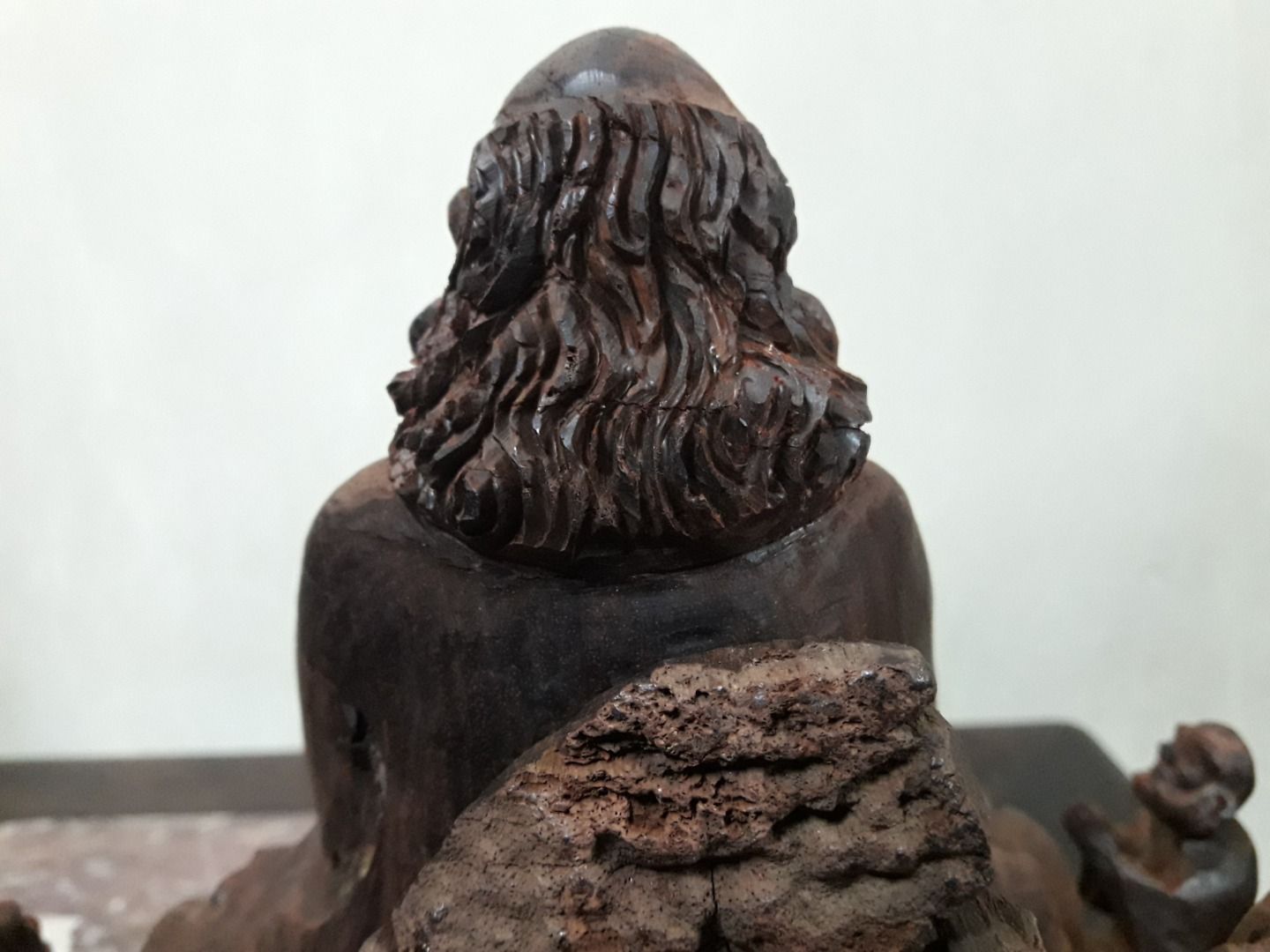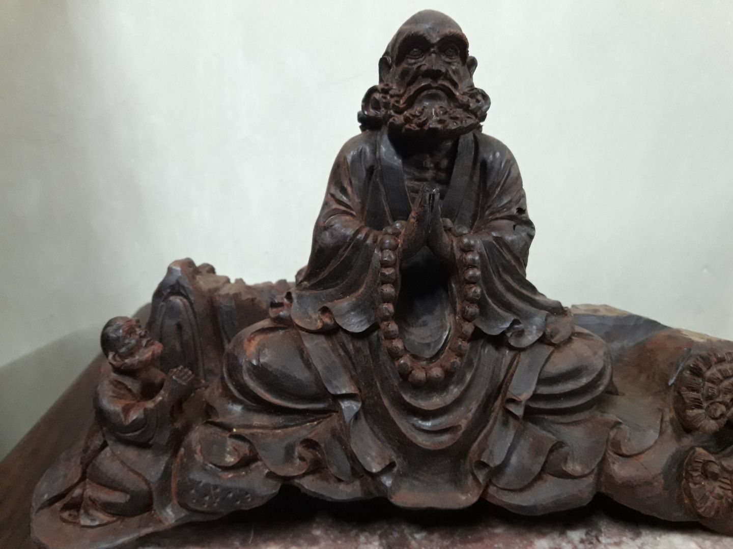 Giao lưu cụ Đạt ma sư tổ ngồi thiền gỗ tr...ắc , dài 36,5cm , cao xấp xỉ 20cm, sâu vào 13,5cm, nặng 2,2kg, gương mặt thần thái trầm mặc, phù hợp bày ở bàn trà , tủ, kệ phòng làm việc.Kính phố.