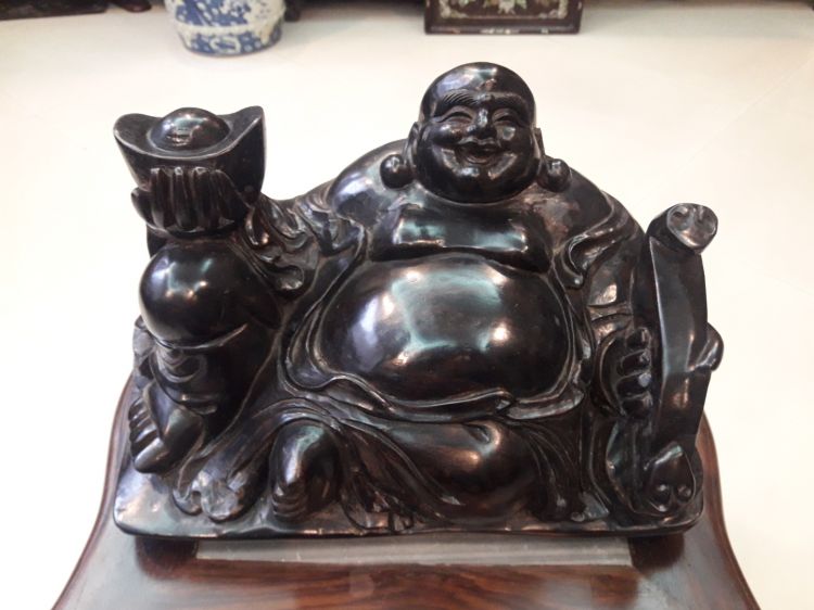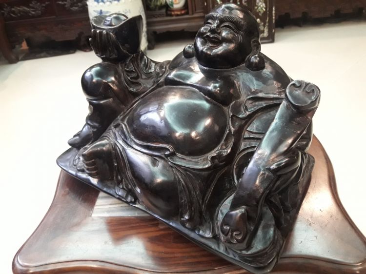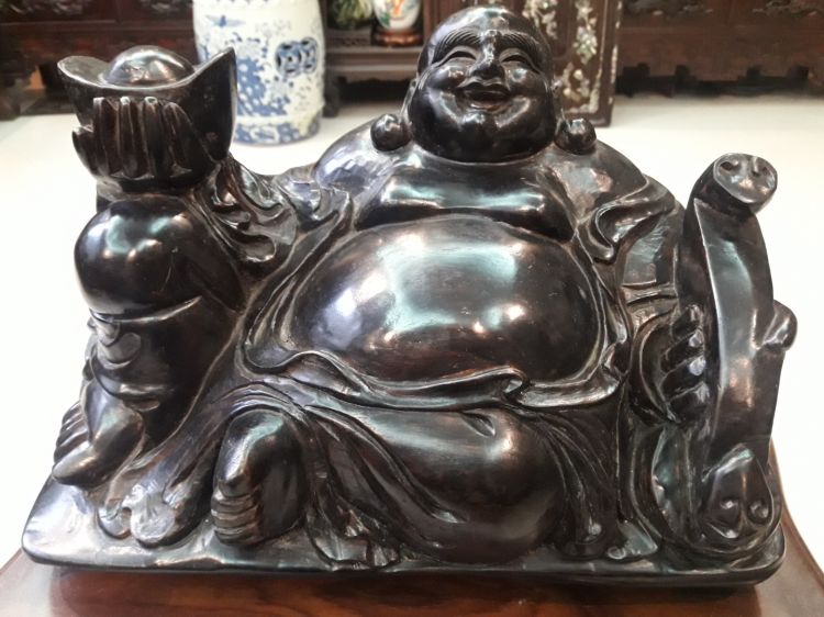 Giao lưu cụ Di lạc rất đẹp , gỗ bách xanh, nải sơn theo lối Tàu rất đẹp mắt, cao xấp xỉ 22cm, chiều ngang chỗ rộng nhất 31cm , đồ đã qua trưng bày nhiều năm, lên ten thời gian rất đẹp, trưng bày phong thủy cho vượng tài lộc trong gia đình. .Kính phố.Các bác giao lưu xin gọi trực tiếp