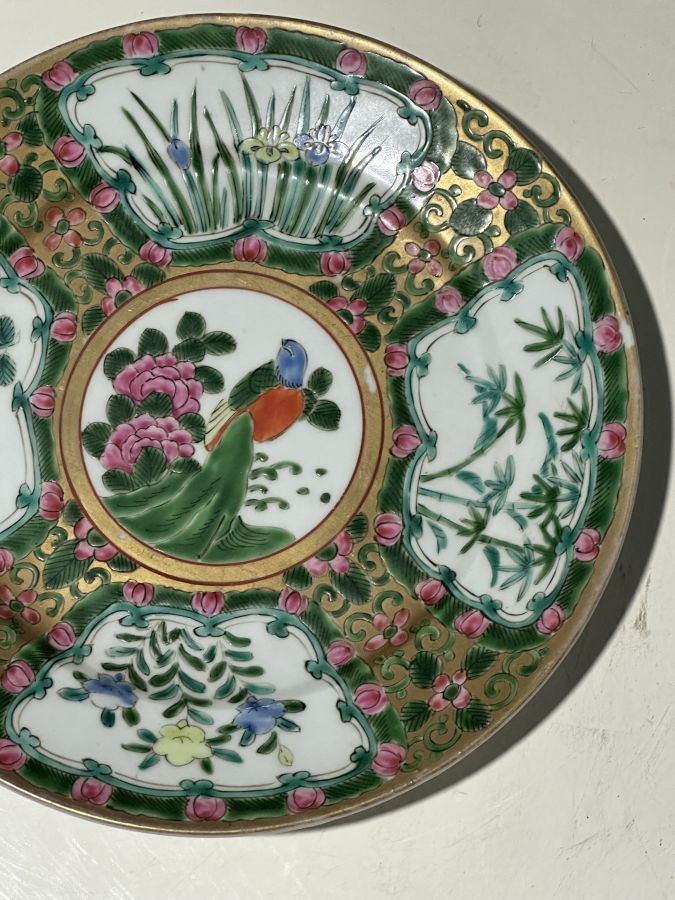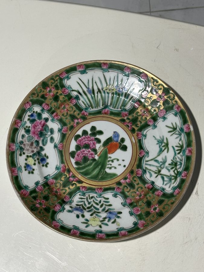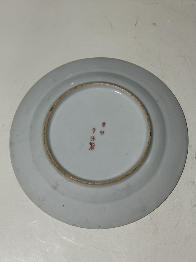 Giao lưu đia ngũ sắc đồ tàu vẽ tay hiệu đề 5 chữ tuyệt đẹp và chuẩn cổ vật ...Ngang 23,5cm .. vẩy tí men cạnh như hình.. bán 850 ngàn bao gởi