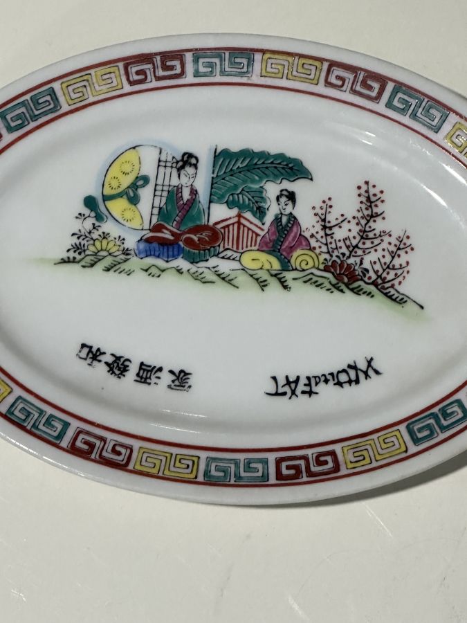 Đĩa xưa dáng hột xoài.. tích tỷ muội tình thâm. Đồ tàu xưa . chuẩn cổ Dài 20cm, ngang 14,2cm lành 450 ngàn đồng bao gởi