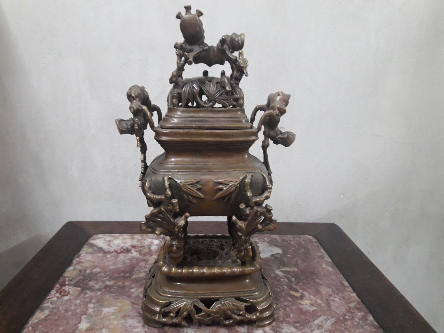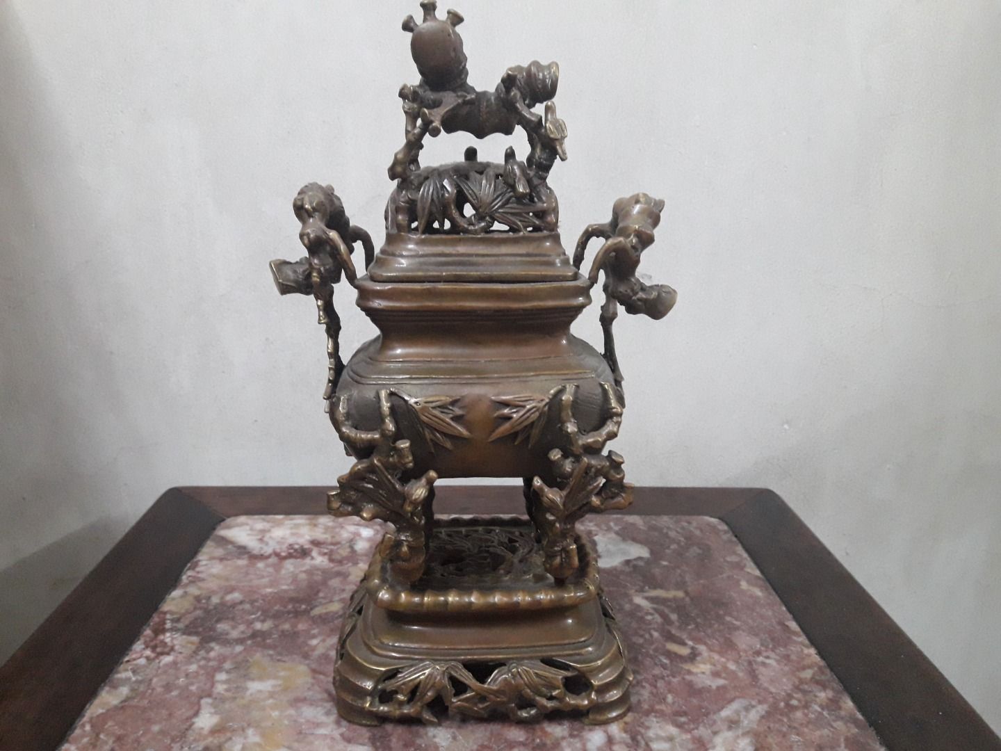 Giao lưu 1 đỉnh đồng đốt trúc rất đẹp , chất liệu đồng vàng xịn , cao 27cm, ngang 16cm, cân nặng 1,5kg, tình trạng lành nguyên vẹn .Kính phố.