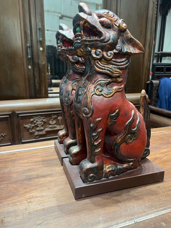 Giao lưu đôi nghê gỗ cổ xưa sơn thiếp đt 0983491274