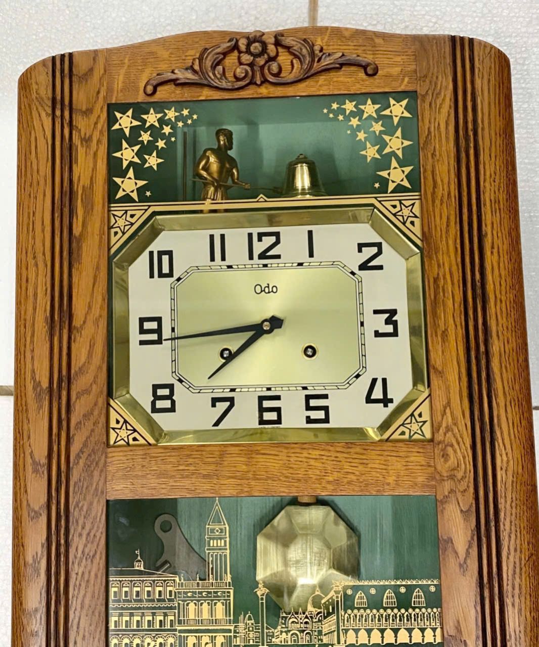 - Máy Zin khá mới đang chạy chuẩn chỉ, cót đủ, chuông 30’ âm khá hay, quả lắc đồng khá đẹp.