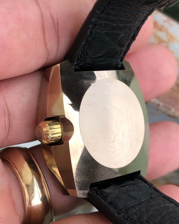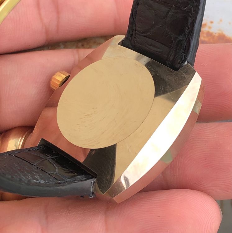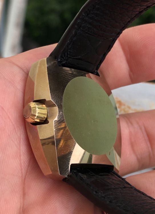 - Vỏ bằng đá Ceramic Vàng còn bén ngót, lên tay khá đẹp và sang trọng. Đính 2 cục Vàng đặc chỗ 6h và 12h.