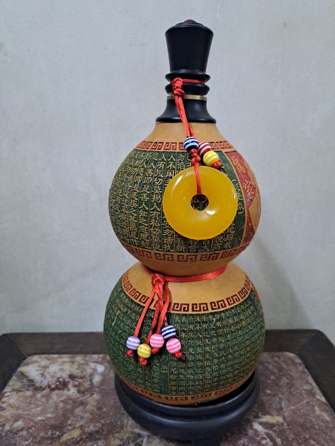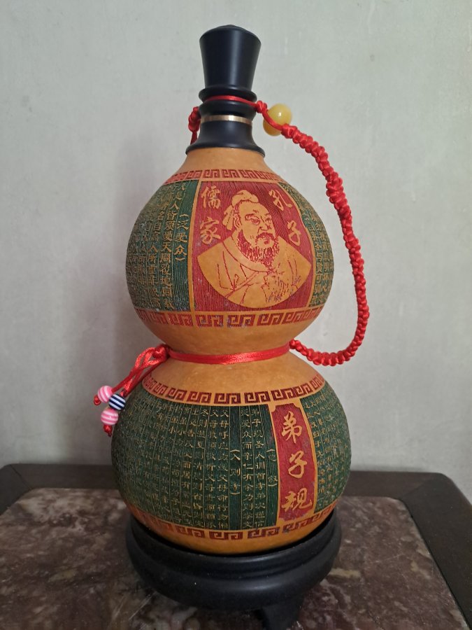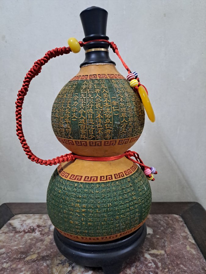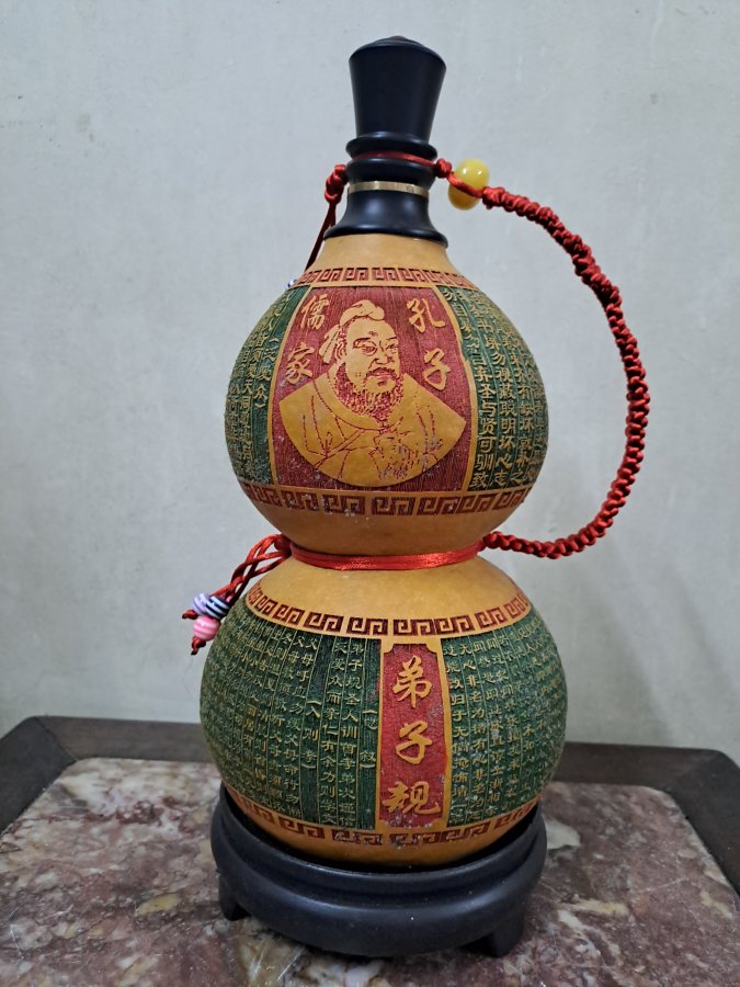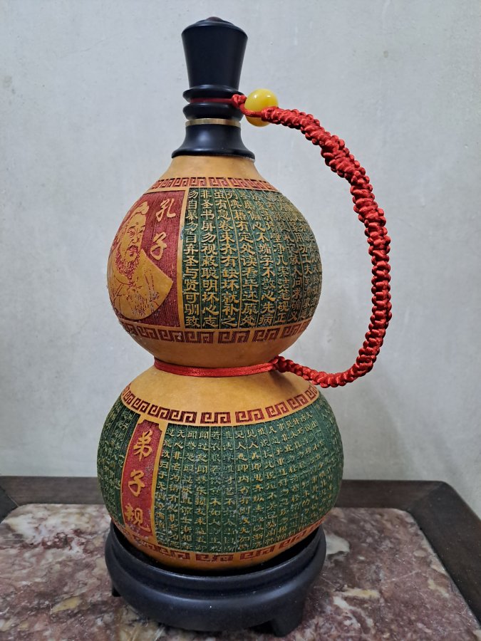 Giao lưu một hồ lô tự nhiên có in hình cụ Chu Tử và bài thơ Chu Tử trị gia rất đẹp mắt cao cả đế 32cm, không tính đế 29cm , vòng bụng to nhất 45cm.Trưng bày phong thủy trong nhà rất ý nghĩa.Kính phố.