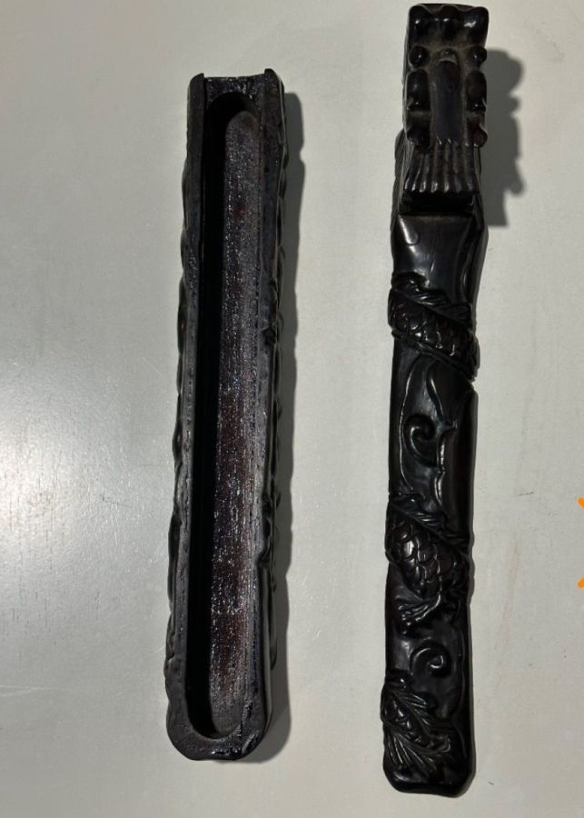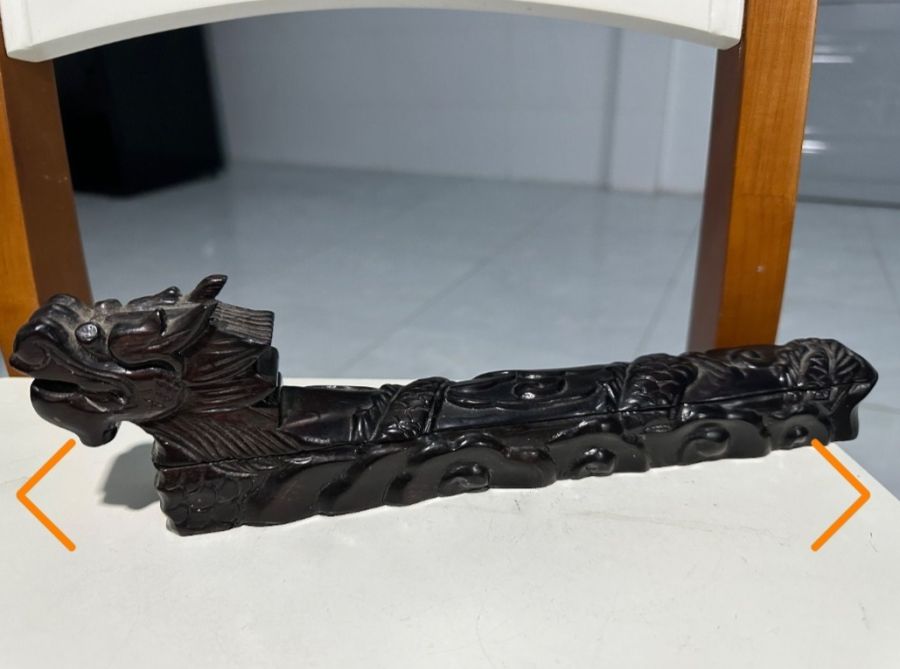 Hộp gỗ chạm rồng đựng bút viết. Đồ xưa chuẩn cổ. Dài 31cm..lành Giao lưu 650 ngàn bao gởi
