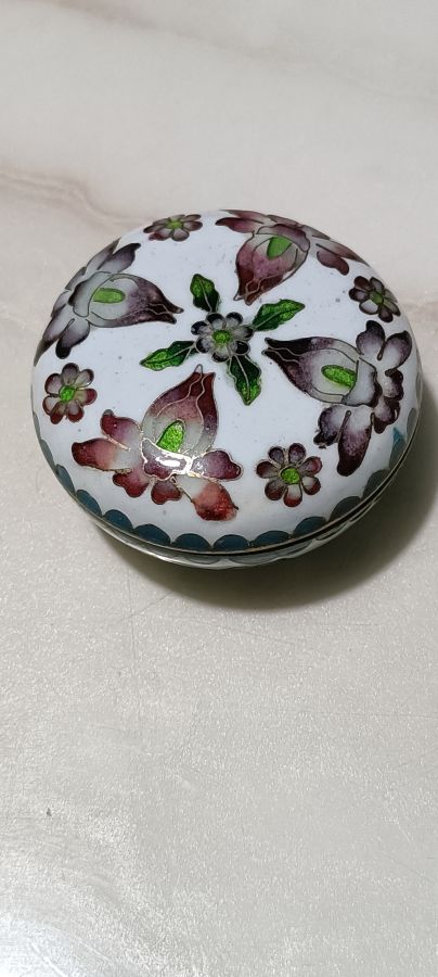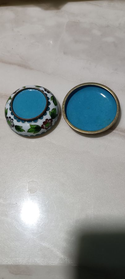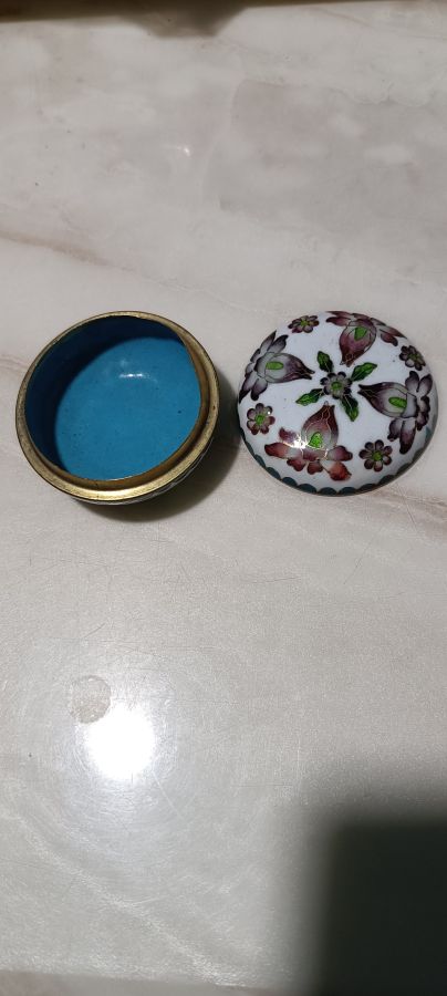 Hộp phấn pháp lam tuyệt đẹp đồ xưa cung đình Huế...bao hàng chuẩn cổ vật..Ngang 5cm lành 450 ngàn..bao gởi