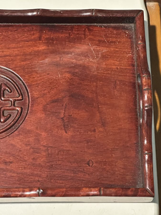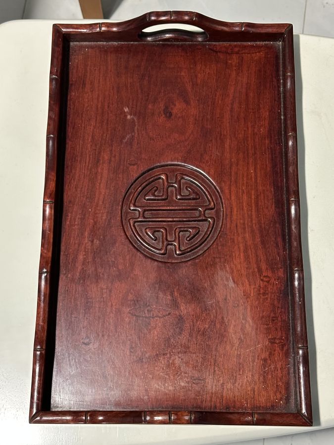 Khay trà xưa bằng gỗ trắc chạm nổi Trúc thọ.Dài 40cm, ngang 25cm, dày và nặng lành nguyên .. rất đẹp .750 ngàn đồng bao gởi