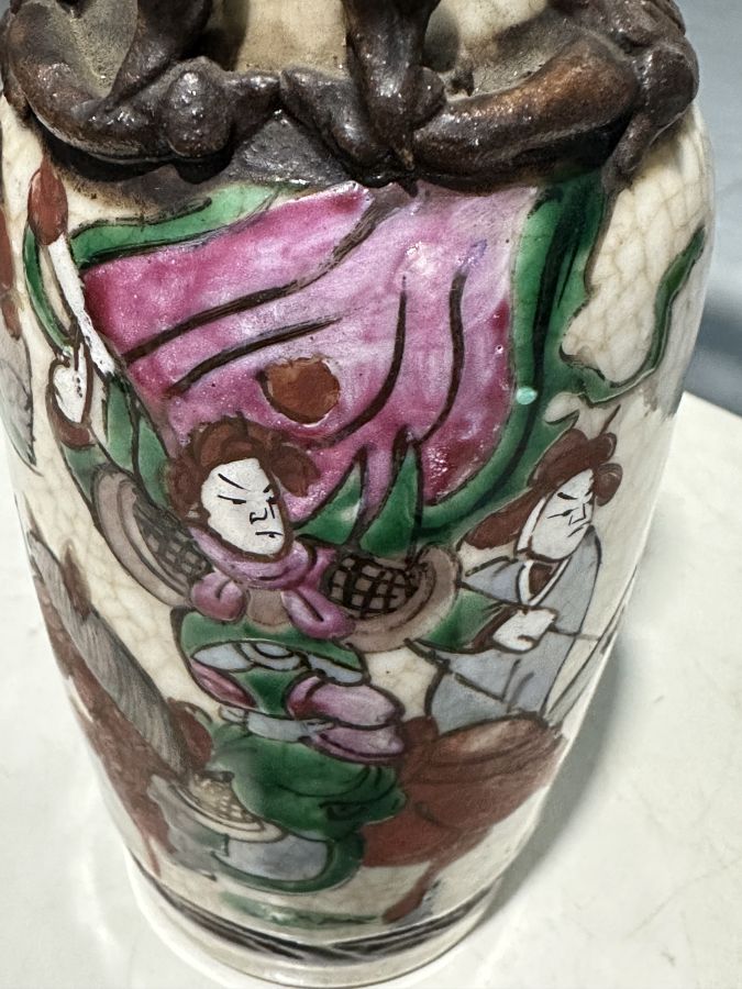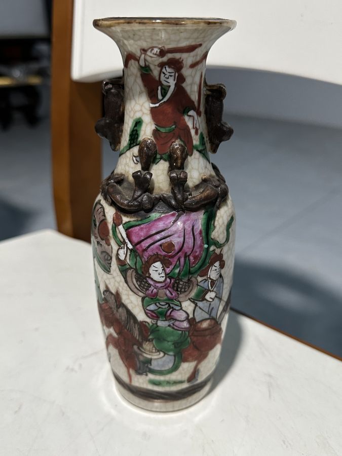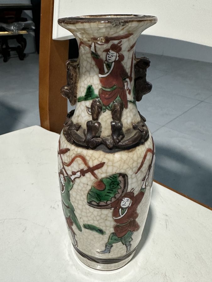 Giao lưu Lộc bình tích Tam quốc. Hiệu đề Thành Hóa niên chế . Đấp nổi nhị lân tứ xà. Thân bình rạn xà văn khai phiến hiếm gặp.Bao hàng chuẩn cổ vật trên 150 năm Cao 20cm, miệng 6cm.. vẩy tí men ngay vành miệng bình như hình ảnh chụp.bán 3 triệu 900 ngàn đồng bao gởi,, không chuẩn cổ bồi thường gấp đôi,, anh chị em khỏi băn khoăn . Anh chị em nào .có Lộc bình như thế này.cũng xin mua lại bằng giá bán. Yêu cầu nguyên và chuẩn cổ vật.. tuyệt đối giữ lời