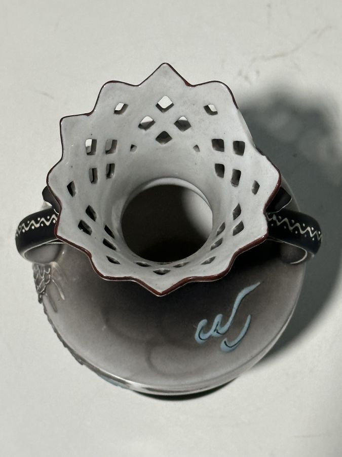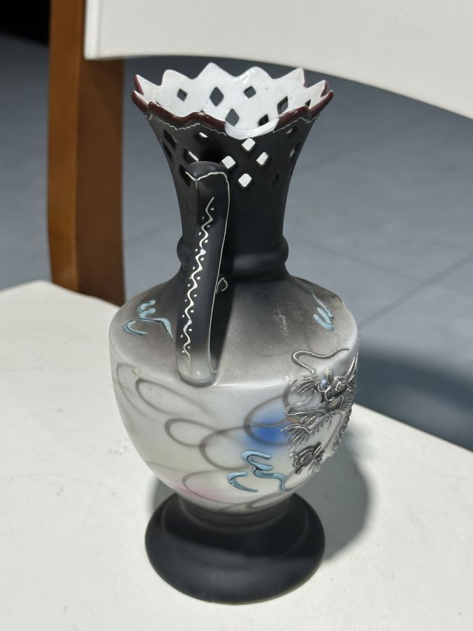 Lục bình nhật bản xưa đấp nổi.Cao 20,5cm, miệng 7cm. Thương binh mất mảnh nhẹ vành miệng như hình .. 350 ngàn đồng bao gởi