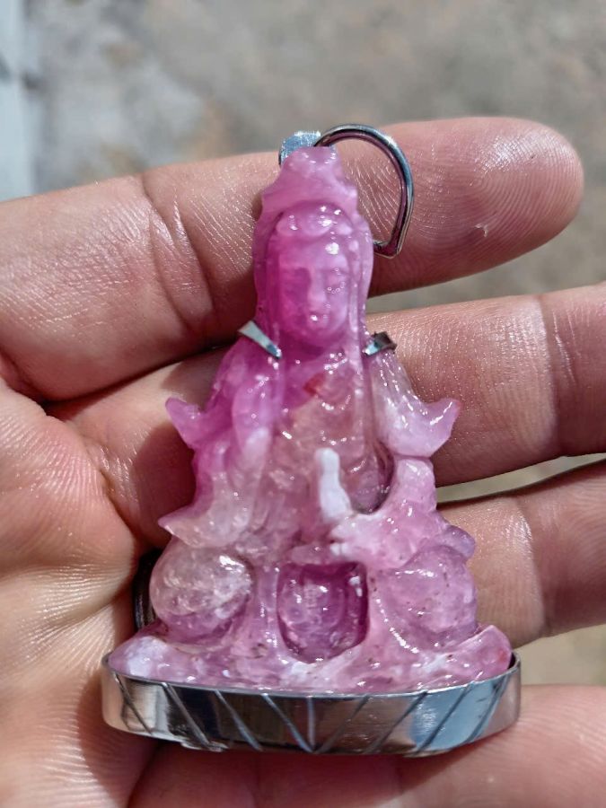Giao lưu mặt đeo quan thế âm ruby hồng bọc sẵn khung inox