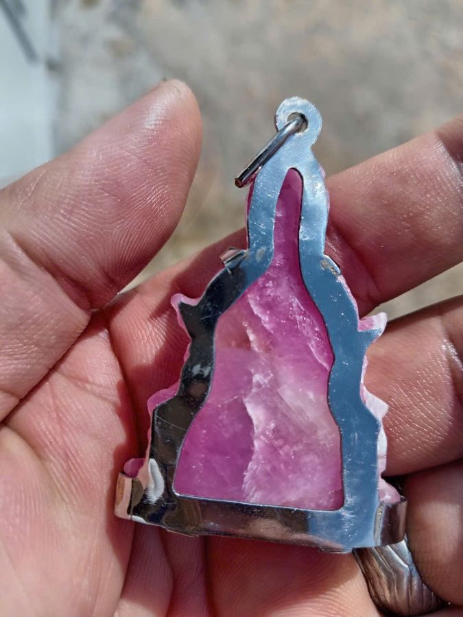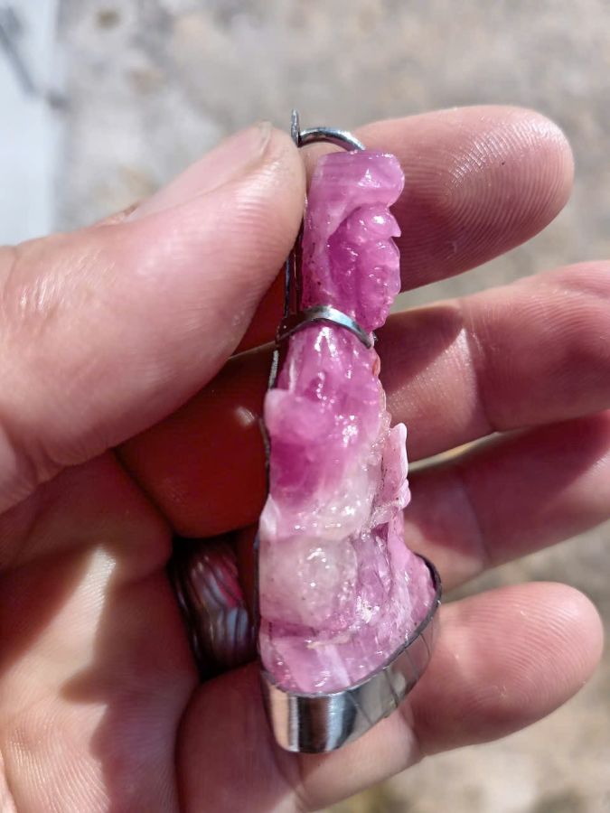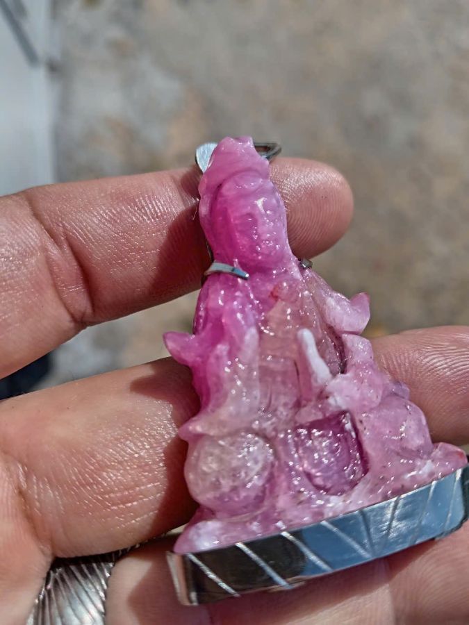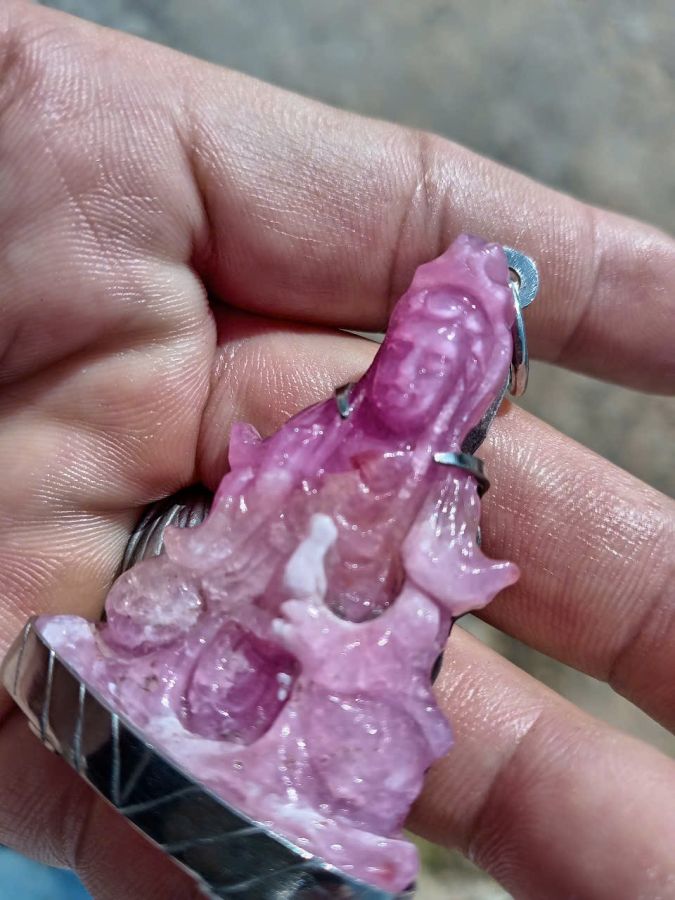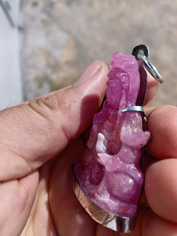 Mặt đeo quan thế âm ruby hồng tự nhiên khung inox giao lưu giá trên